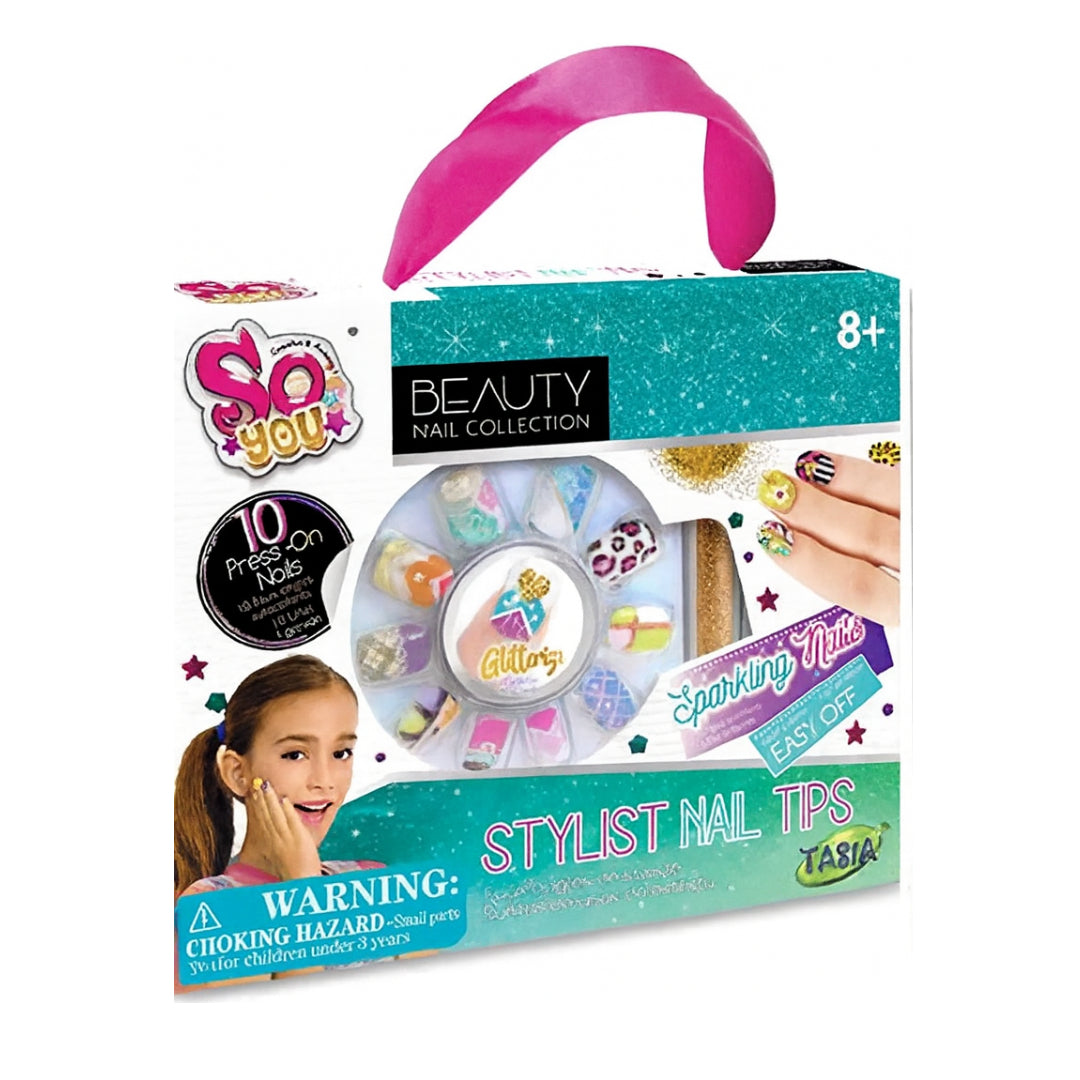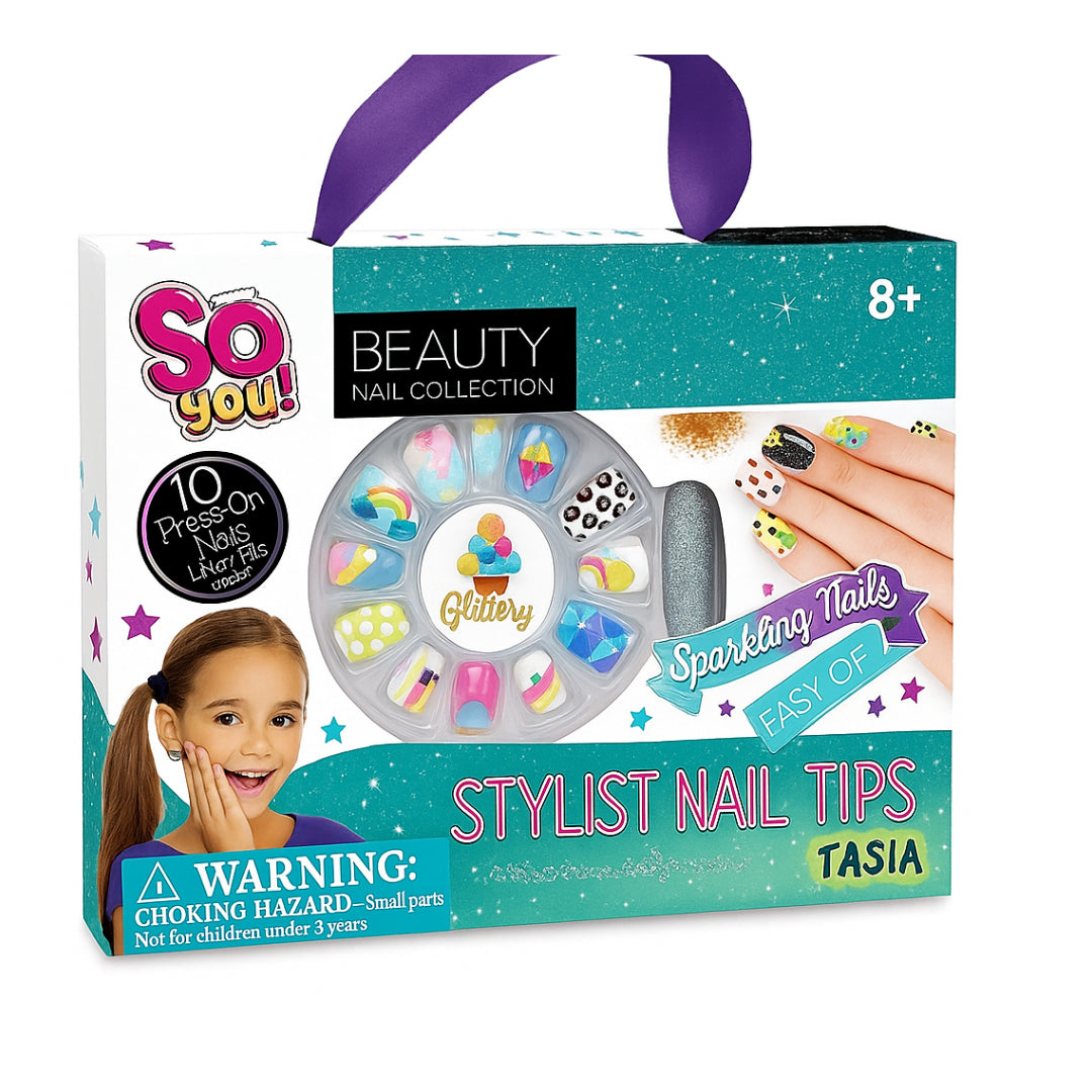 -شملت نصائح الأظافر المصمم أظافر الصحافة ، بريق مع حاوية بلاستيكية ، ورقة ملصق على الوجهين. - أنه يحتوي على أشكال مختلفة وألوان وتصميمات. - تطوير القدرات الفنية والإبداع. - يساعد تنسيق اليد. - الفئة العمرية المناسبة: 5 سنوات وأكثر. - يتم بيع كل منها بشكل منفصل عن طريق الاختيار العشوائي.