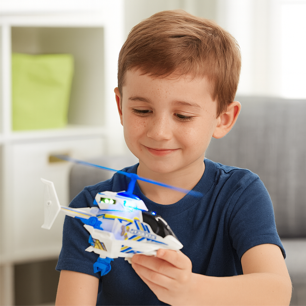 خذ رحلة وشرعت في مهمة الإنقاذ الخاصة بك مع طائرة هليكوبتر لإنقاذ الشرطة الخفيفة في Teamsterz Light & Sound. - تتميز هذه المروحية التفصيلية بالشفرات الدوارة ذات الحركة الحرة ، والباب المنزلق ، والأضواء الوامضة الأزرق ، وأصوات الطوارئ ، وأصوات المروحية والموسيقى المستقبلية. - إنقاذ المدنيين في خطر مع الرافعة اليدوية ويطيرهم إلى بر الأمان - تمامًا مثل مروحية إنقاذ واقعية. - الهدية المثالية لأي طيار صغير متحمس ، يقدم ساعات من المرح الخيالي. - مساعدة تطور مهاراتك الاجتماعية الصغار والمهارات الحركية الدقيقة. - مناسبة لأعمار 3 سنوات+.