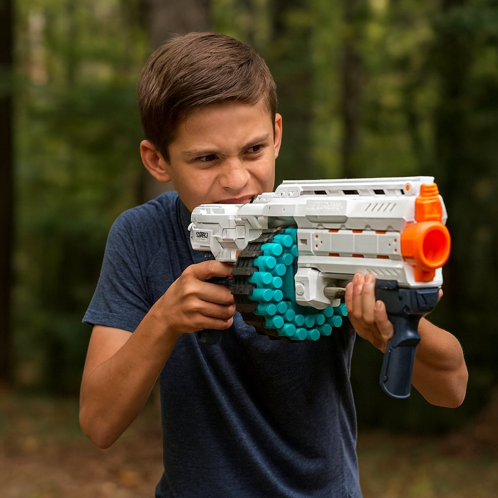 - سعة DART: قم بتحميل قدرتك الضخمة 40-Darts ، برميل التلقائي التلقائي. في الحالة غير المحتملة التي تنفد من السهام ، ما عليك سوى فصل برميلك للحصول على سريع وسهل إعادة الملء.