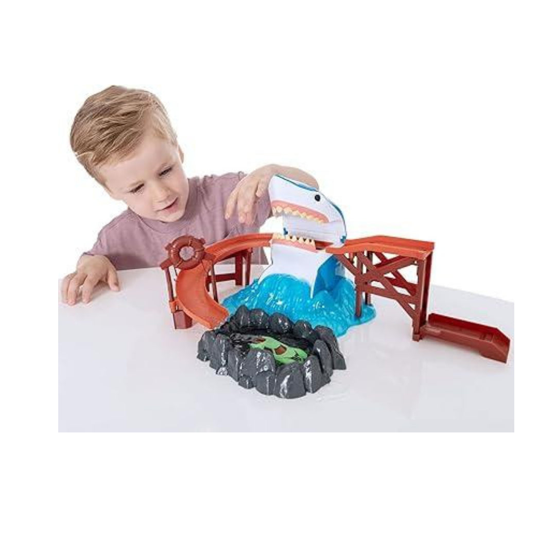 Teamsterz Color Dilling Shark Bite Playet Catch وتحول سيارات الألعاب إلى ألوان مختلفة تمامًا مع تلوين لدغة Shark Teamsterz. ولكن عليك أن تحذر من فكي سمك القرش لأنها تتساقط للقبض على سيارتك في بطن القرش قبل إطلاقها بلون مختلف. دفع سيارتك إلى بر الأمان. خارج وعلى الرصيف ، ثم Razz أسفل الطريق المنحدر في البركة الصخرية من الماء البارد الجليدي لتحويله إلى لونه الأصلي. ما هو اللون الذي ستقوده.