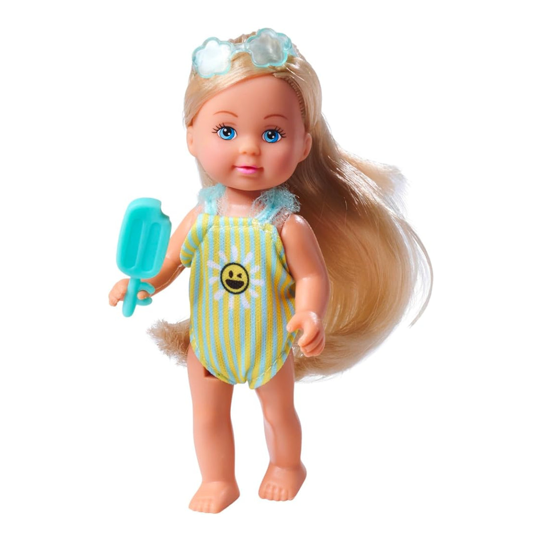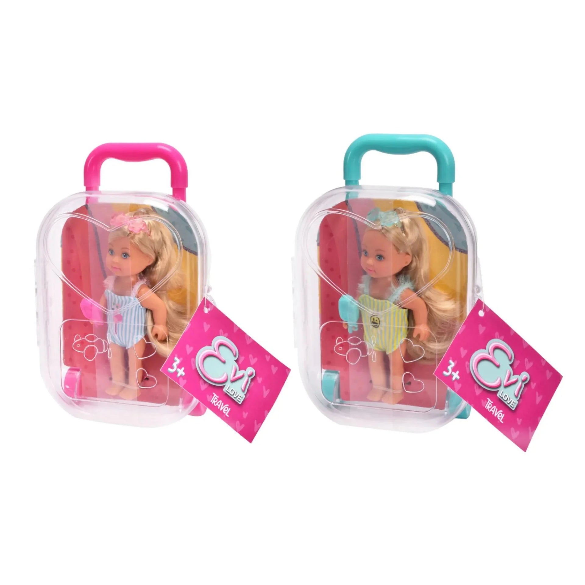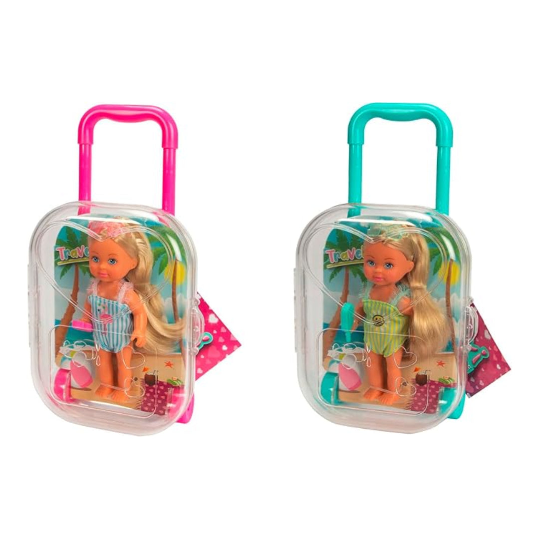 Evi Love Travel ، تشكيلة ، عنصر واحد فقط ، تم تسليمه ، دمية لعبة في حقيبة المتداول ، يرتدي ملابس السباحة المكررة ، وتشمل النظارات الشمسية والجليد ، 12 سم ، 3+