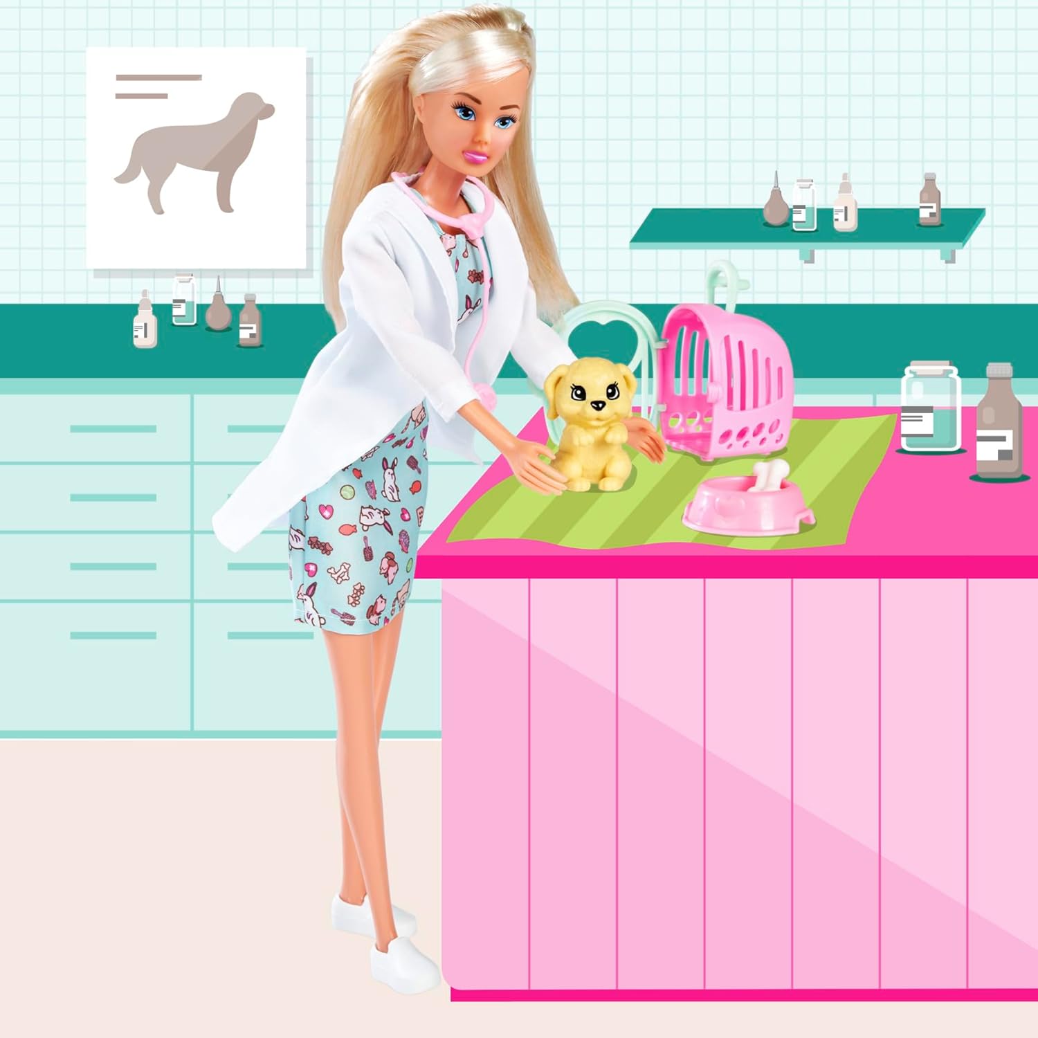 يتولى ستيفي دور طبيب بيطري رعاية ويعتني بمحبة كلب صغير. كانت ترتدي معطفًا أبيض مختبرًا فوق فستان خضراء عالي النعناع مزين بأشكال لطيفة مثل الكلب والقطار والأرانب والقنفذ والأسماك والعظام والقلوب وغيرها من التفاصيل. تتضمن المجموعة حقيبة حمل ، وعاء وعظم ، يثري دور الأدوار ويقدم مجموعة متنوعة من خيارات اللعب. هذه playet مثالية للأعمار 3 وما فوق الذين يتمتعون بتشغيل الأدوار ورعاية الحيوانات. سيمبا-متعة الفيل القوية! تركيز تنمية المنتج هو حماس الأطفال. للبنين والبنات ، الصغيرة والكبيرة. يجب أن يستمتع الأطفال وتشجيعهم.