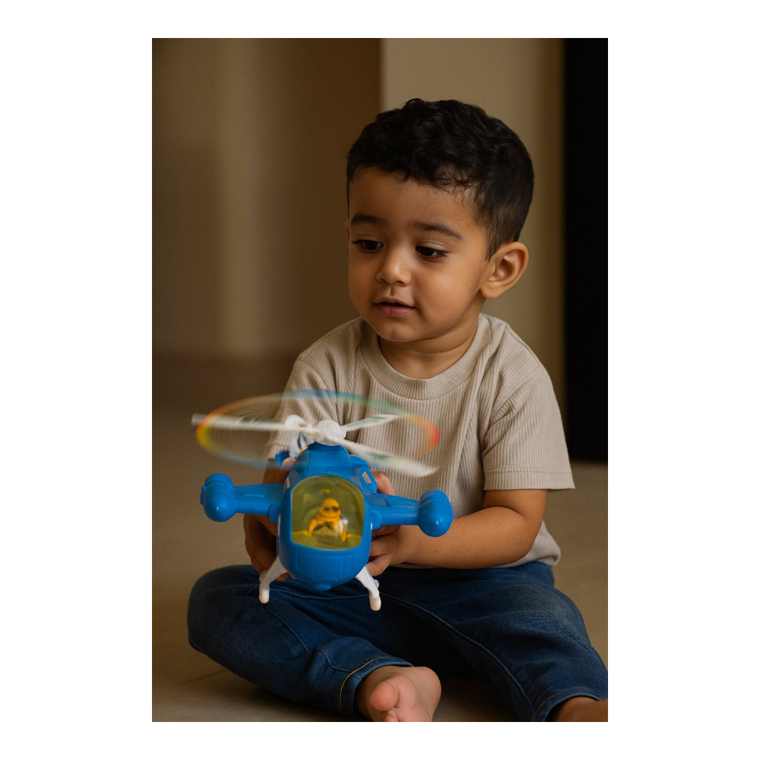 مروحية-فئة فريق مرافقة الهواء: مروحية تُعامل مع البطارية الموصى بها العمر: 3 سنوات وما فوق مخطط الألوان: أبيض مع تفاصيل زرقاء وخضراء ميزات المنتج: المراوح الدوارة: دوارات غزل واقعية تحاكي حركة طائرات الهليكوبتر الفعلية. الضوء الكهربائي والمؤثرات الصوتية: يأتي مع مصابيح مدمجة وأصوات مروحية واقعية لتجربة اللعب الغامرة. حركة عالية السرعة: مصممة للحركة السريعة على الأسطح المسطحة ، مما يضيف الإثارة إلى وقت اللعب. الحركة التلقائية: مجهزة بعملة النتوء والتخلي-يغير الاتجاه عندما يضرب عقبة. تصميم قمرة القيادة الشفافة: يعطي عرضًا داخليًا مفصلاً ويضيف مظهرًا مستقبليًا. بناء قوي: مصنوع من البلاستيك غير السامة والمتين يقاوم اللعب النشط. التغليف: يأتي في صندوق جذاب تحت عنوان مع علامة تجارية واضحة وصور اللعبة.