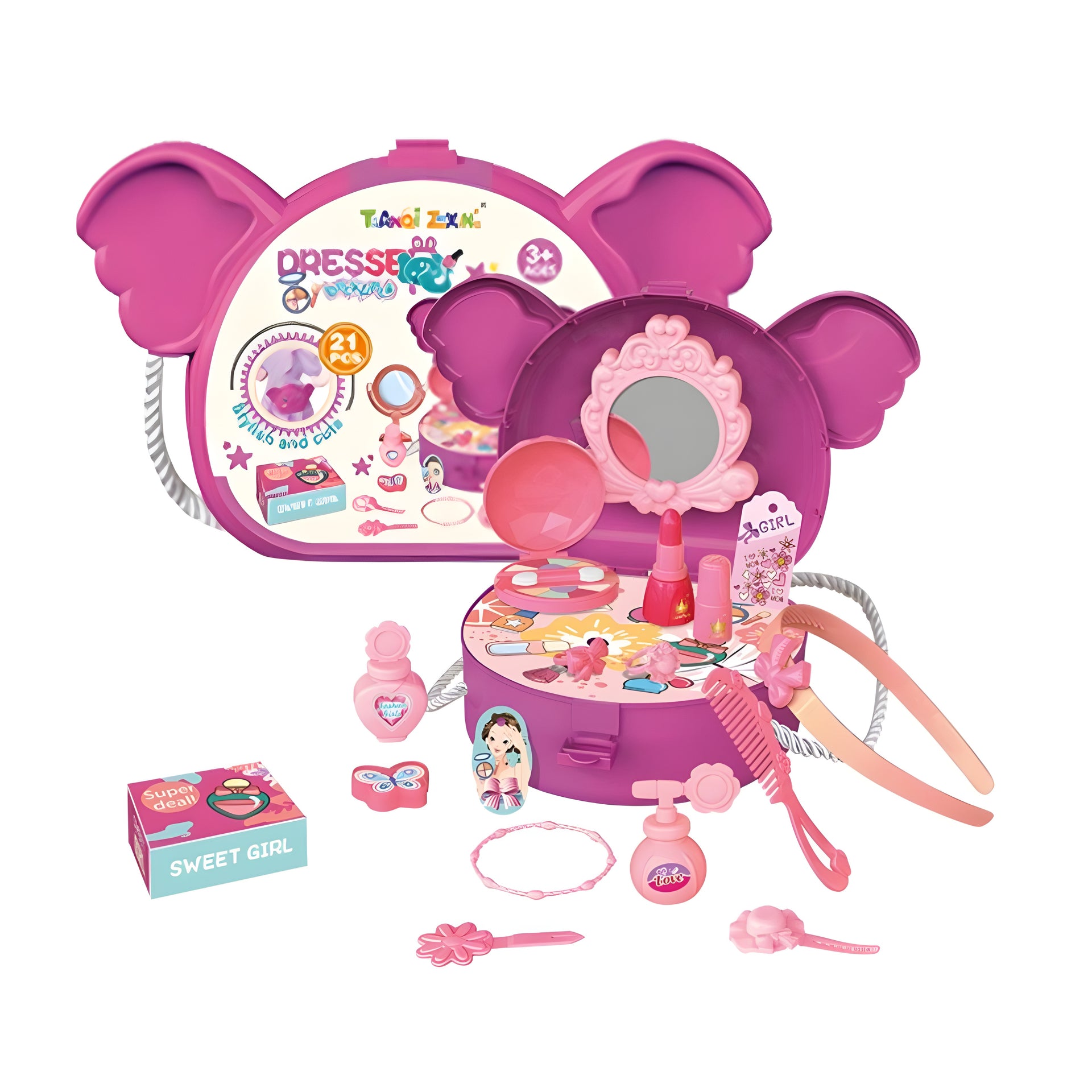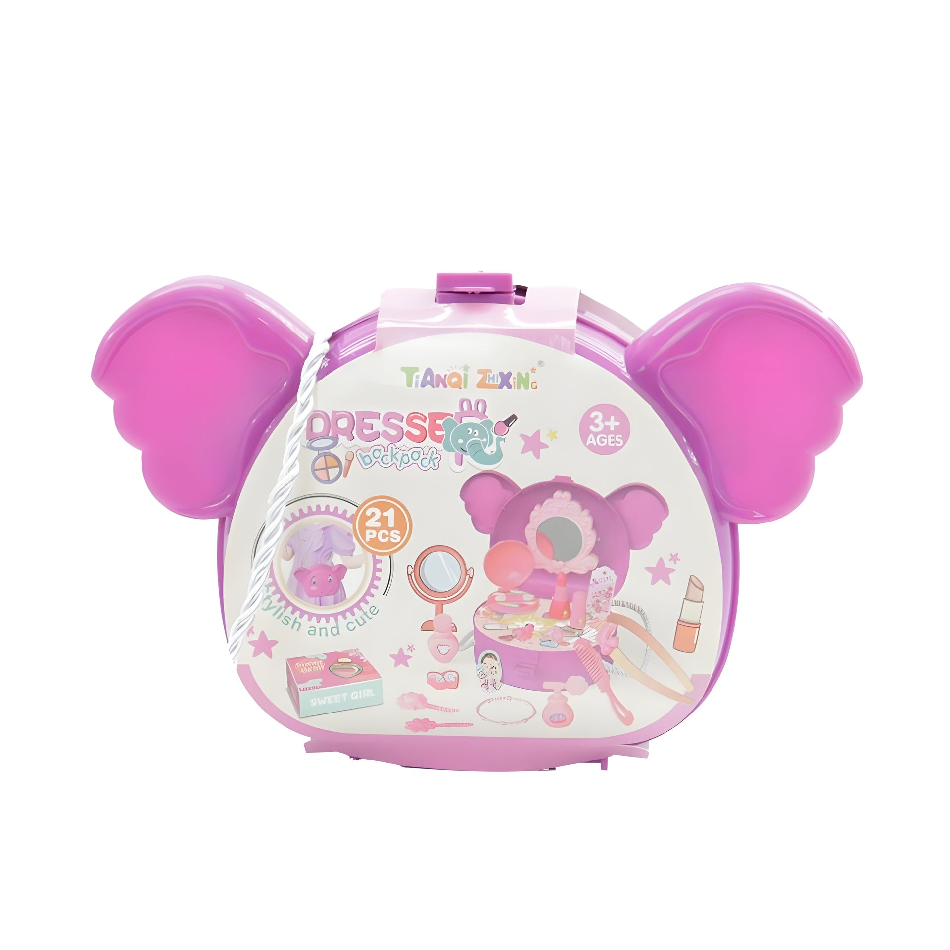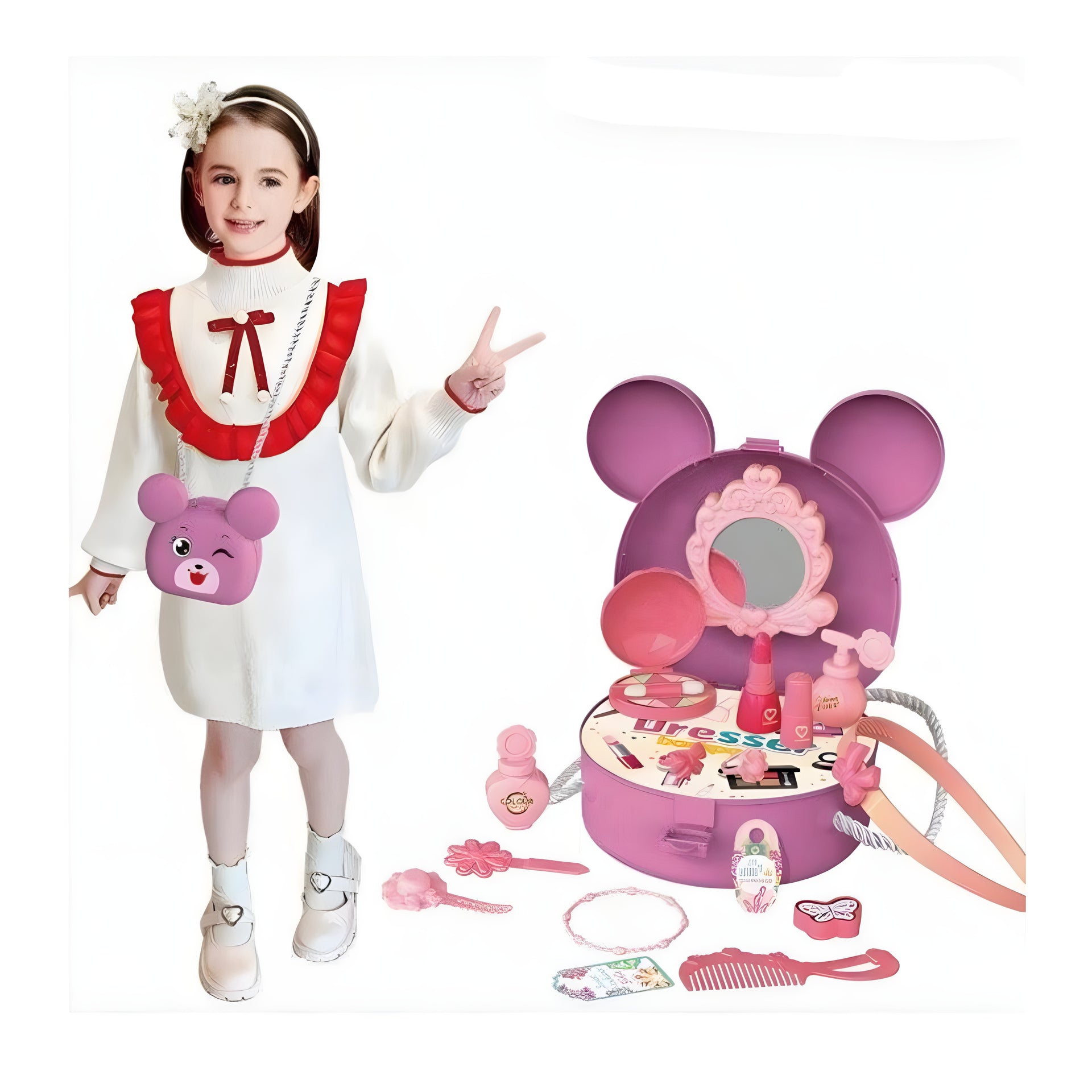 مجموعة جمال اللعب المبهجة هذه المكونة من 21 قطعة مصممة خصيصًا للأطفال الصغار الذين يحبون اللعب الخيالي. تأتي مجموعة الخزانة المحمولة في علبة غرور لطيفة على شكل أذن فراشة، وهي مثالية للأطفال الذين تبلغ أعمارهم 3 سنوات فما فوق. يضيف التصميم الوردي والأرجواني النابض بالحياة السحر ويشجع على لعب الأدوار والتفاعل الاجتماعي والتفكير الإبداعي. الميزات الرئيسية:مجموعة مكياج كاملة: تشمل مرآة اللعبة وأحمر الشفاه التظاهر وطلاء الأظافر ولوحة أحمر الخدود وفرشاة الشعر ومجفف الشعر والمشط ورباط الشعر والسوار والحلقات والمزيد. 21 قطعة في المجموع: جميع عناصر المكياج والاستمالة الأساسية التي يحتاجها الطفل لمحاكاة روتين جمال حقيقي. آمن للأطفال: مصنوع من البلاستيك غير السام والآمن للأطفال ؛ لا حواف حادة. علبة حمل محمولة: تتحول إلى طاولة غرور عند فتحها وتخزن جميع القطع بسهولة عند إغلاقها. المرآة التفاعلية: مصممة بإطار زخرفي لإثارة لعبة الجمال الخيالية. الهدية المثالية: مثالية لأعياد الميلاد أو العطلات أو أي مناسبة خاصة. المهارات المطورة: الإبداع و لعب دور التنسيق بين اليدين والعين والتفاعل الاجتماعي التعرف على اللون والشكل الموصى به العمر: 3 سنوات وما فوق الأبعاد (تقريبًا): مضغوط وخفيف الوزن لسهولة الحمل من قبل الأطفال.