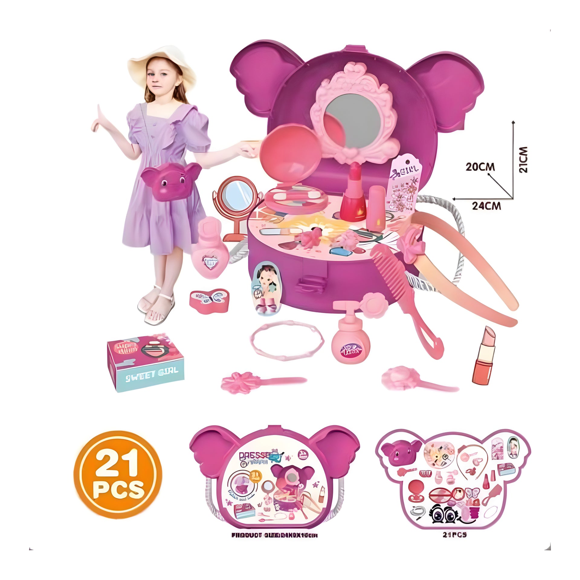 - مجموعة ملابس الجمال 21-Piece للفتيات الغرور المحمول