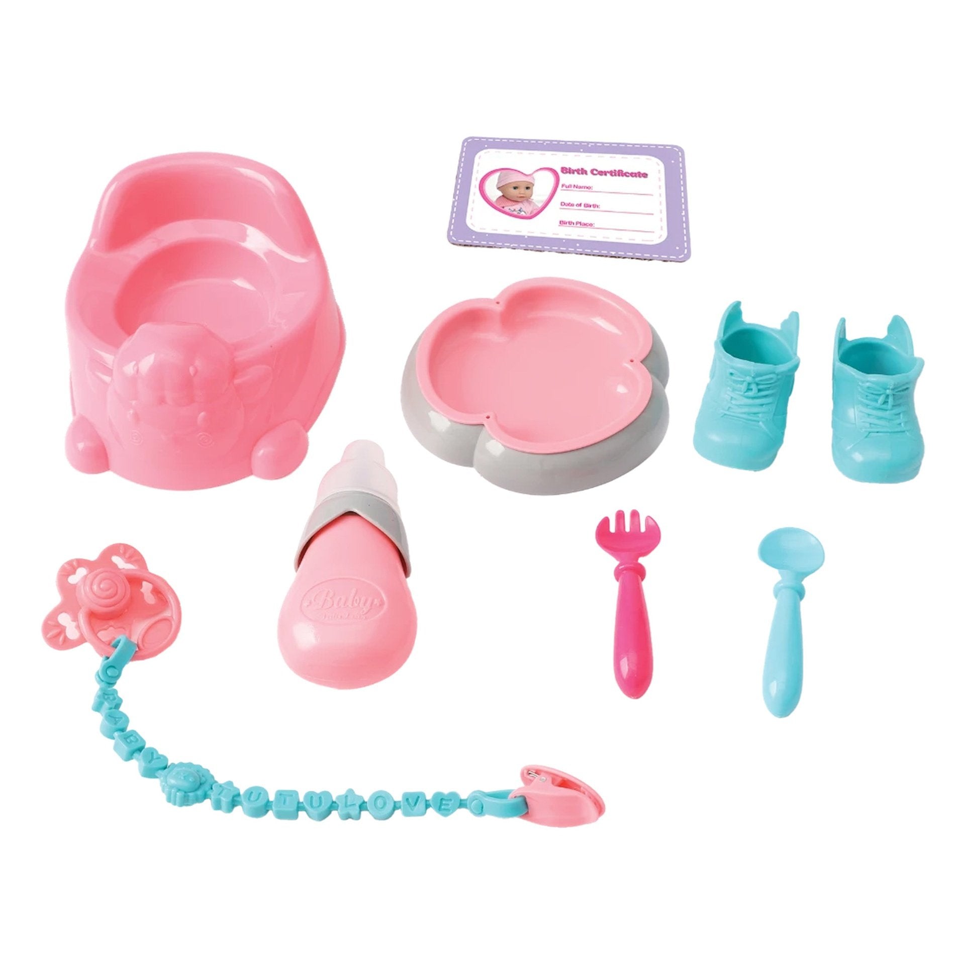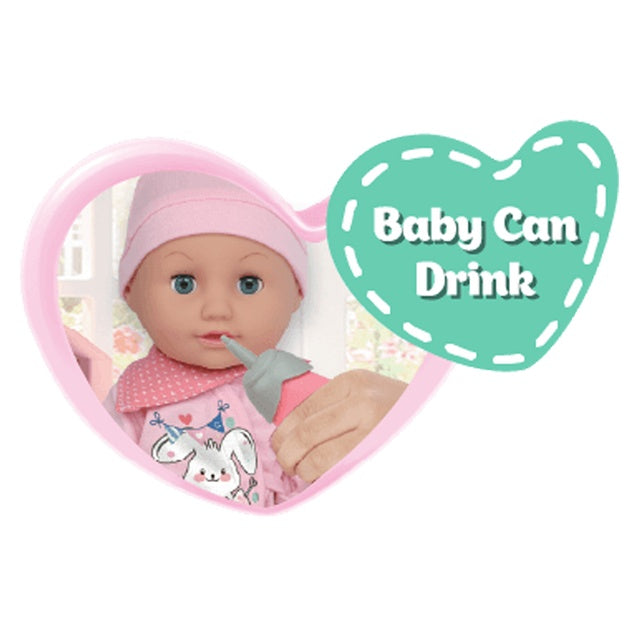 تتضمن دمية طفل 14 بوصة يمكن أن تشرب وبلل ، مما يوفر تجربة لعب واقعية للأطفال.