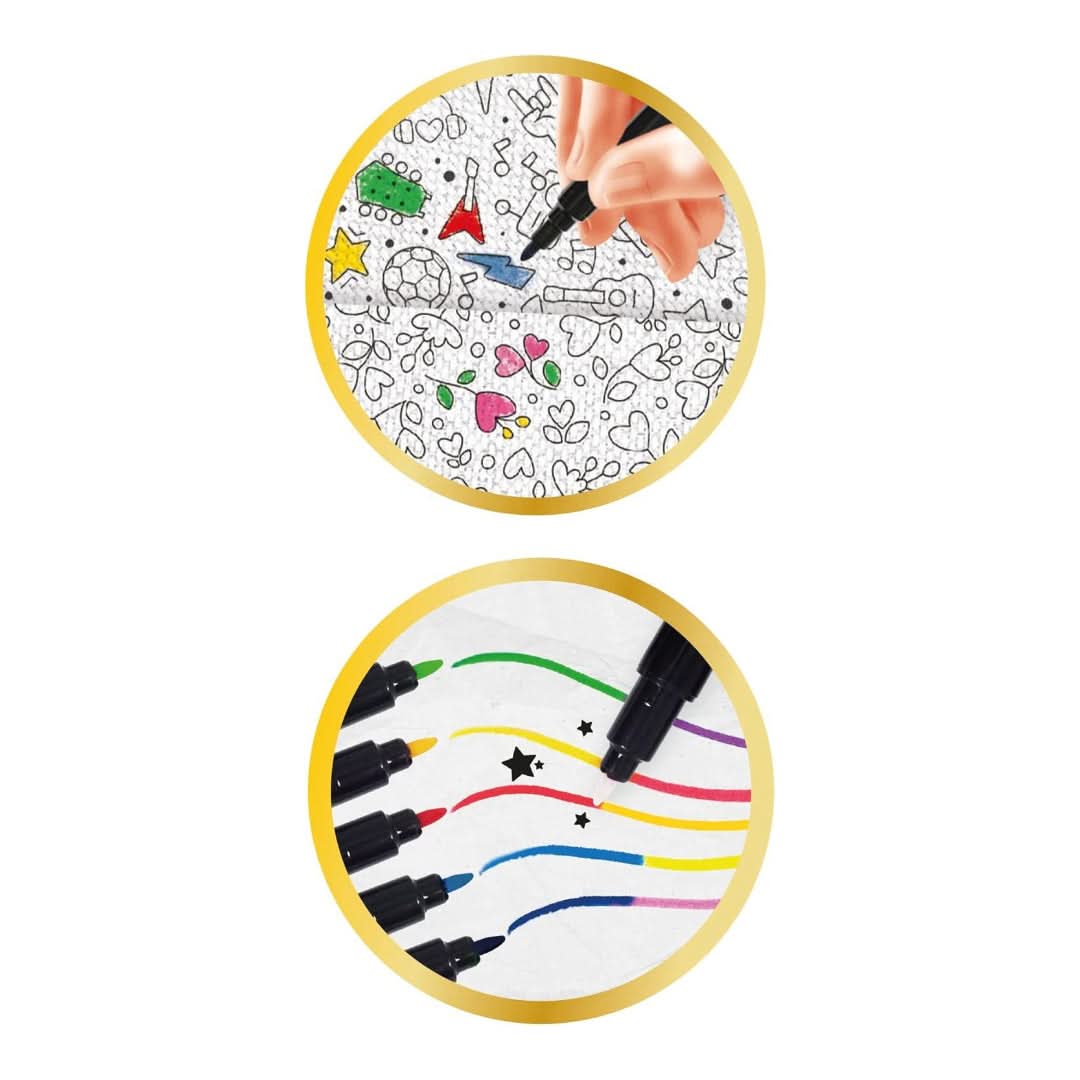 يتضمن العديد من الملحقات: علامات سحرية ، مواد لاصقة للتلوين ، أقلام الألوان المائية ، مصباح LED ، 2 اللكمات ، أحجار الراين ، الأشرطة.