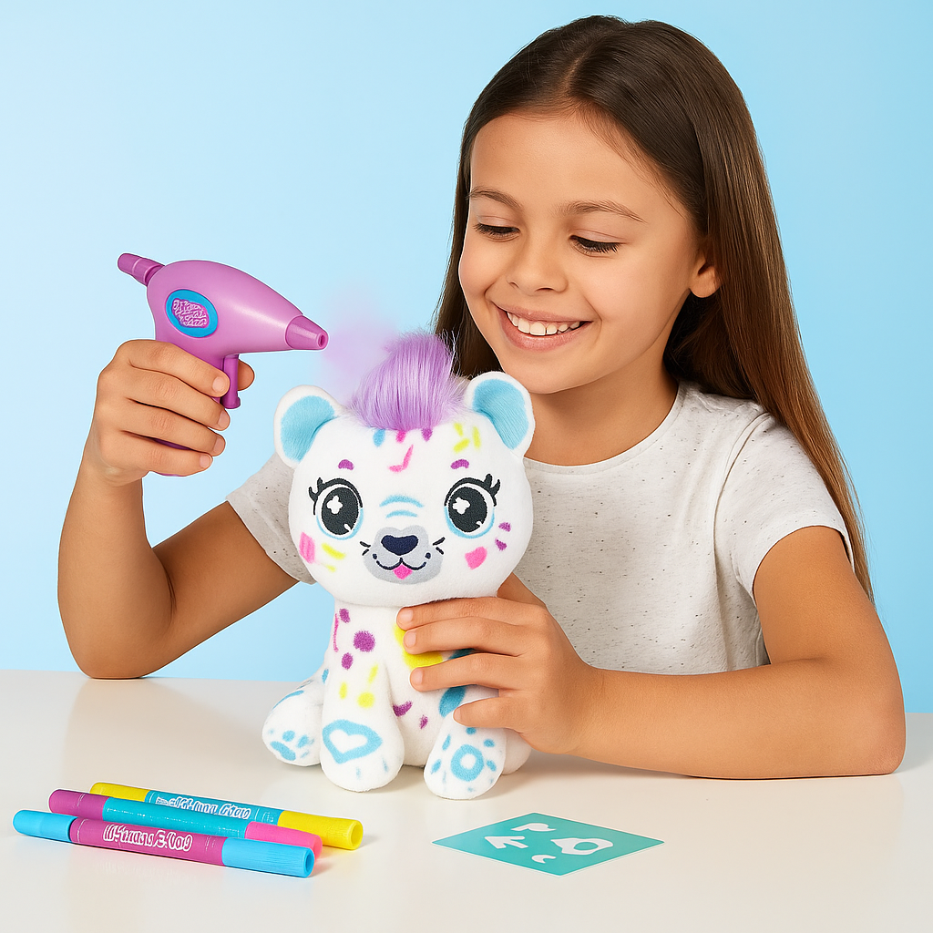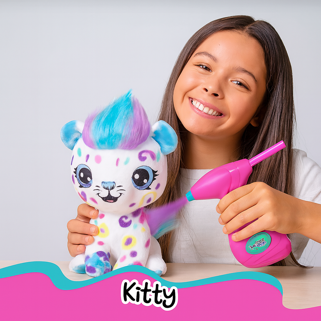 أطلق العنان لإبداعك مع البخاخة أفخم كيتي، رفيق المحبب الذي يمكنك تصميمه وغسله وتزيينه مرارًا وتكرارًا! يتميز هذا القط الفخم الرائع بالفراء الأبيض الناعم ونظام البخاخة الفريد الذي يتيح للأطفال تخصيصه بألوان نابضة بالحياة وتوقيت المرح.