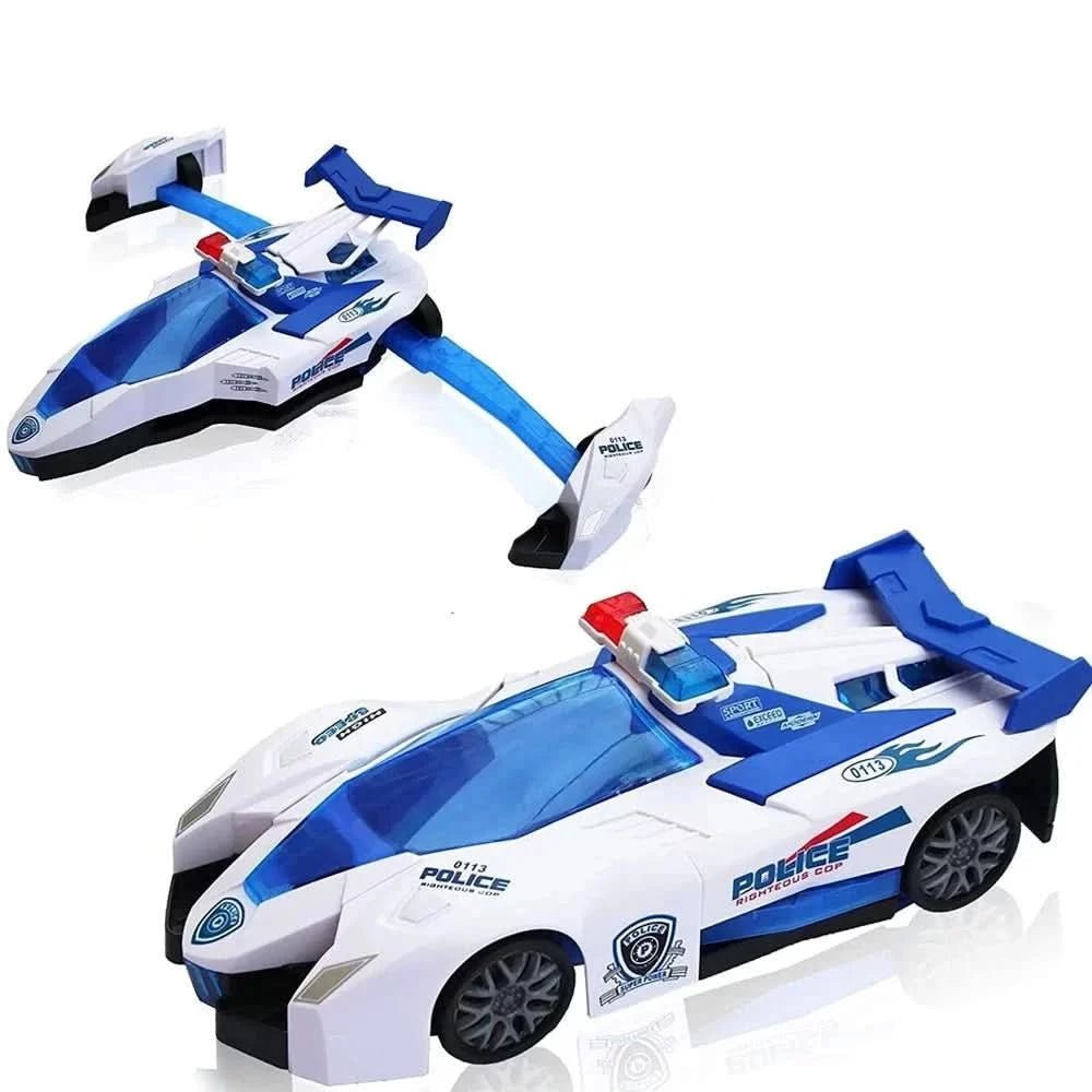 لعبة طائرة متحولة لسيارة شرطة واقعية. قم بتشغيل المفتاح، ستنتقل السيارة تلقائيًا. يمكن تبديل سيارة دورية الشرطة والطائرة أثناء عملية النقل بسلاسة. من الرائع جدًا القيام بدوريات في الشوارع بسيارة شرطة طائرة. تأتي لعبة سيارة الشرطة بعجلة عالمية في الأسفل. عند مواجهة العوائق، ستغير سيارة اللعبة اتجاه القيادة بشكل عشوائي لتجنب التعثر. لا تقلق بشأن الاصطدام بالحائط أثناء لعب الأطفال. إضاءة LED 5D وتأثير صوتي مصحوب بإضاءة LED رائعة وموسيقى ديناميكية، ستصرخ سيارة الطائرة من أجل العدالة مثل الشرطة. مناسبة للعب الأدوار 3 بطاريات AA غير متضمنة في العبوة. العمر 3 سنوات فما فوق