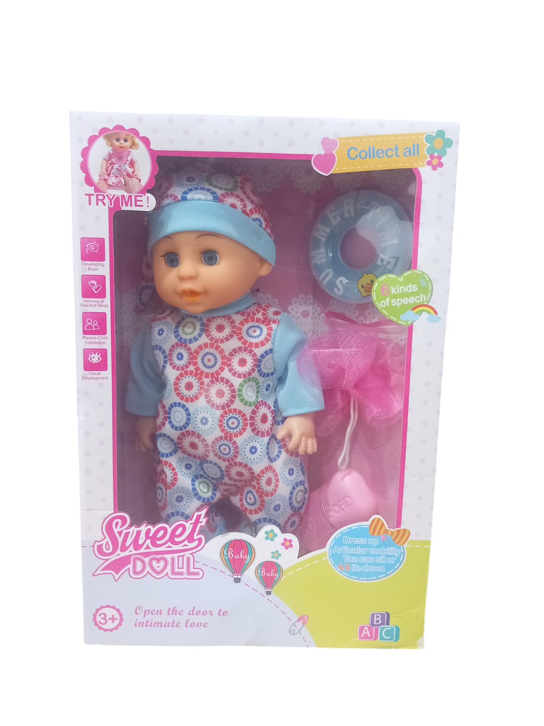 دمية مع الملحقات. مخصص للأطفال الذين تزيد أعمارهم عن 3 سنوات.