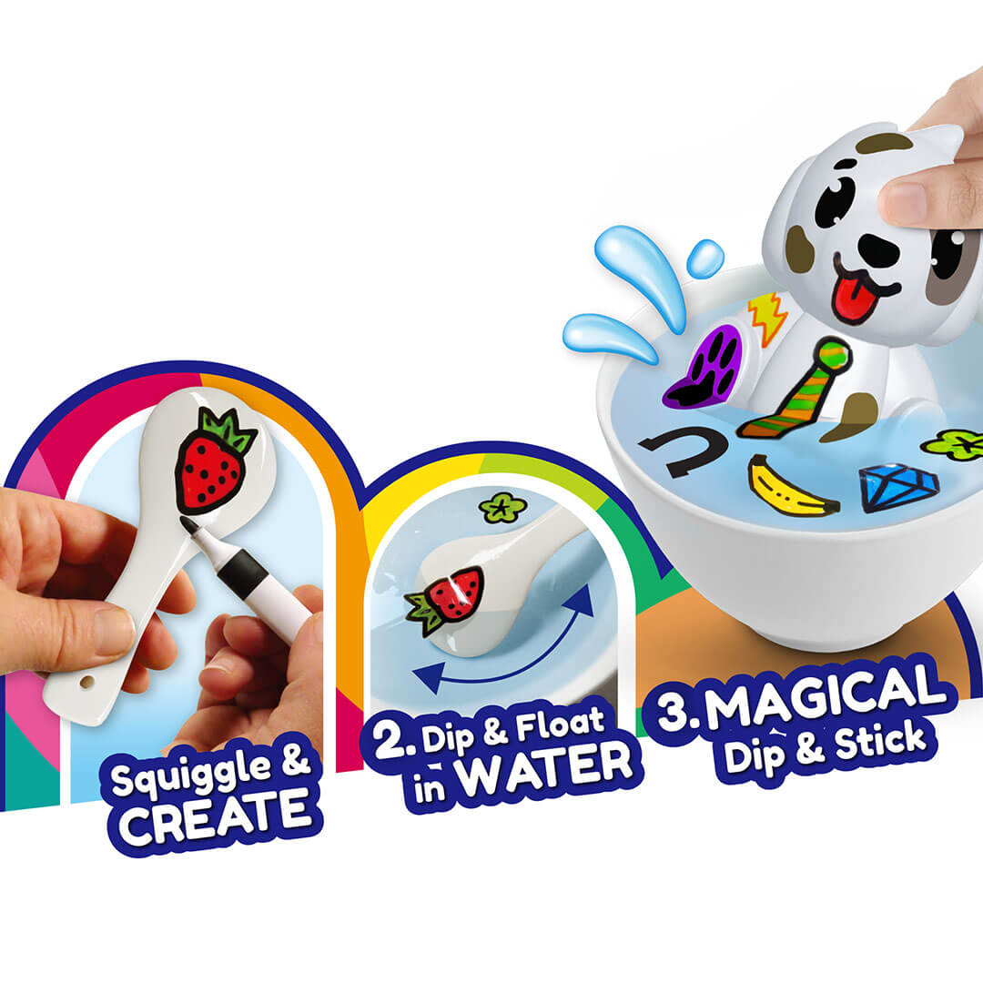 جلب رسوماتك إلى الحياة مع فن الماء! ما عليك سوى رسم إبداعاتك على الجزء الخلفي من الملعقة ، وغطسها ولفها في وعاء من الماء ، وشاهد السحر يحدث! كن فنانًا مائيًا سحريًا بينما تستمتع بساعات من الإبداع الذي لا نهاية له!