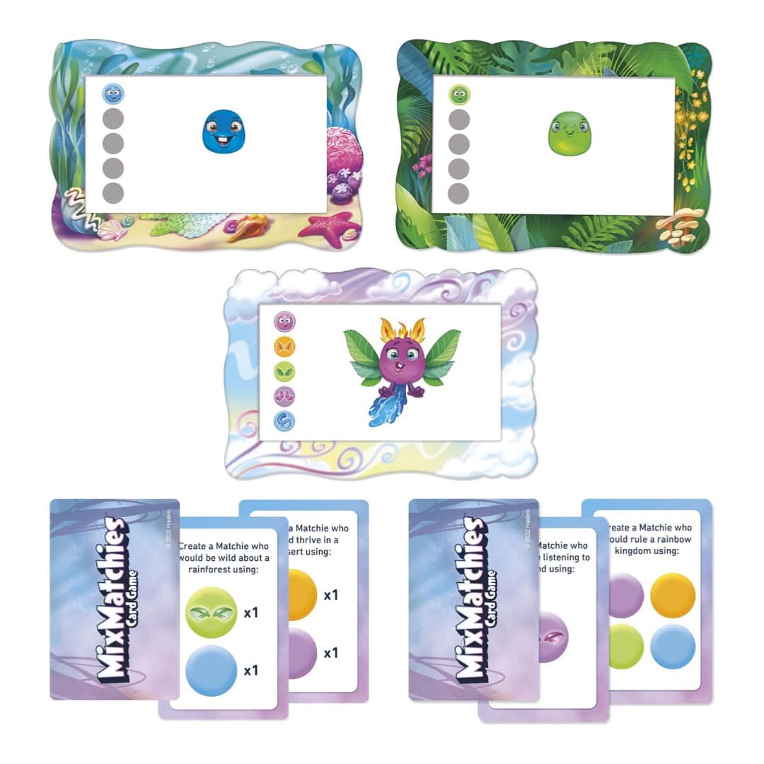 إنشاء أصدقاء سحريين: في هذه اللعبة المطابقة للأطفال ، يتنافس اللاعبون مع أصدقائهم لإنشاء أفضل مختلطات ؛ اتبع بطاقات المبدع لإكمال المباريات الرائعة ، وسهلة الإعداد واللعب - ما عليك سوى وضع صواني Matchie و Deal 3 Creator إلى المركز والبدء في الاستمتاع - إنها لعبة ممتعة للعب
