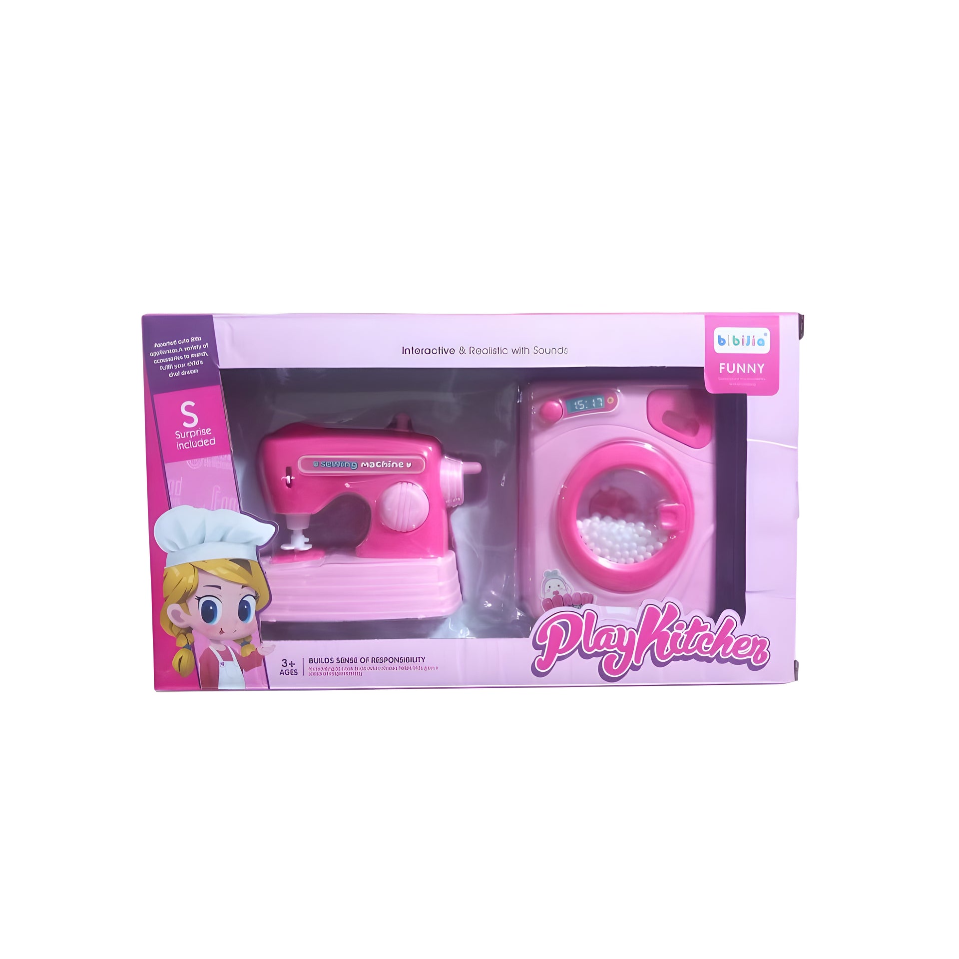 مجموعة لعبة الغسالة وآلة الخياطة مع الحركة والضوء