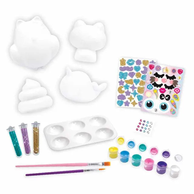 أطلق العنان لخيالك مع مجموعة الطلاء اللطيفة الجميلة! قم بإنشاء شخصيات اسفنجي رائعة قابلة للضغط باستخدام الدهانات النابضة بالحياة واللمعان والملصقات. حرفة ديي مثالية للأطفال لطلاء وتزيين وتخصيص ألعاب اسفنجي.