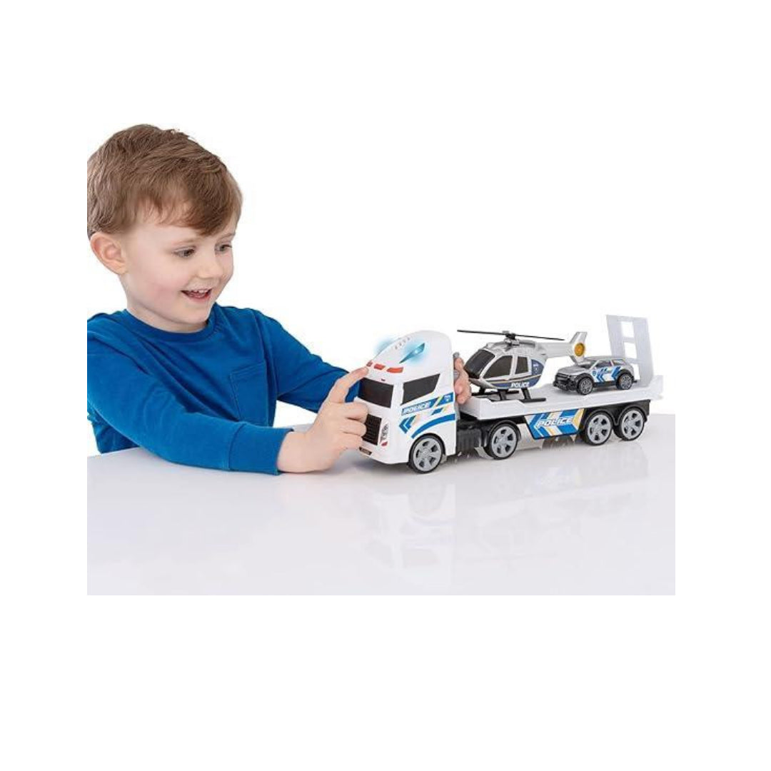 Teamsterz Small Police Helicopter Carrier - يمكن أن تساعد شركة PlaySet لشرطة Teamsterz شابك على أن يصبح أفضل ضابط شرطة. دع خيالهم يركضون ، وهم يندفعون إلى الإنقاذ للقبض على الأشرار وإنقاذ الجميع من المواقف الخطرة. امنحهم صلاحيات خاصة لتشغيل شكل المنتجع الخاص بهم داخل منزلك باستخدام أعنف خيالهم. دعونا نفعل كل ما في وسعنا للحفاظ على الجريمة إلى الحد الأدنى في منزلك. الميزات: كن الأول في مشهد الطوارئ مع فريق Teamsterz Lights & Sound Police ومروحية هذه الناقلة المفصلة مع الأضواء الوامضة في حالات الطوارئ ، وأصوات صفارات الإنذار في حالات الطوارئ وأصوات المحرك ، مثالية لأي طفل مهتم بالانضمام إلى الشرطة. يمكن لطفلك أن يخدم وحماية منزلك باستخدام هذه الألعاب ، باستخدام السيارة لمتابعة المجرمين مع الحصول على الدعم الجوي من مروحية الشرطة. الهدية المثالية لأي طفل ، وتوفير ساعات من المرح الخيالي. الأضواء والأصوات: يوفر Teamsterz شكل الضوء والنطاق الصوتي مصابيح وميرة وميرة وميرة وضوضاء المحرك. إنها لعبة مثالية لأي طفل يريد الانضمام إلى قسم الشرطة ، لأنه يشجع التعلم من خلال اللعب من خلال تطوير الإبداع واللعب المعرفي. لعب الأدوار جزء حاسم من نمو طفلك. يساعد على تطوير مهاراتك الاجتماعية والخيال والمهارات الحركية الرائعة لأن لعبة الشرطة هذه هي الحجم المثالي لدفع اللعب. ميزات المنتج: تشمل شاحنة نقل للشرطة واحدة وطائرة هليكوبتر للشرطة وسيارة واحدة للشرطة. الأبعاد (H X W X D): 14.5 × 8.6 × 38 سم. يتطلب 3 × بطاريات LL44 (متضمنة). مناسبة للأطفال لمدة 3 سنوات وما فوق - توفر مجموعة Teamsterz مجموعة كبيرة من المركبات القابلة للتجميع من ناقلات Monster Moverz ، ومدينة الطوارئ ومجموعة Metro City. أصبح التعلم ممكنًا من خلال مجموعة Teamsterz من خلال التفاعل مع مركباتهم الإضاءة والصوت الواقعية. نريد أيضًا أن يستكشف الأطفال العالم من حولهم والعثور على مغامرة في منزلهم وحديقتهم ، لذلك يقدم Teamsterz أيضًا مجموعة واسعة من ألعاب اللعب والمرائب ومجموعات المسارات.