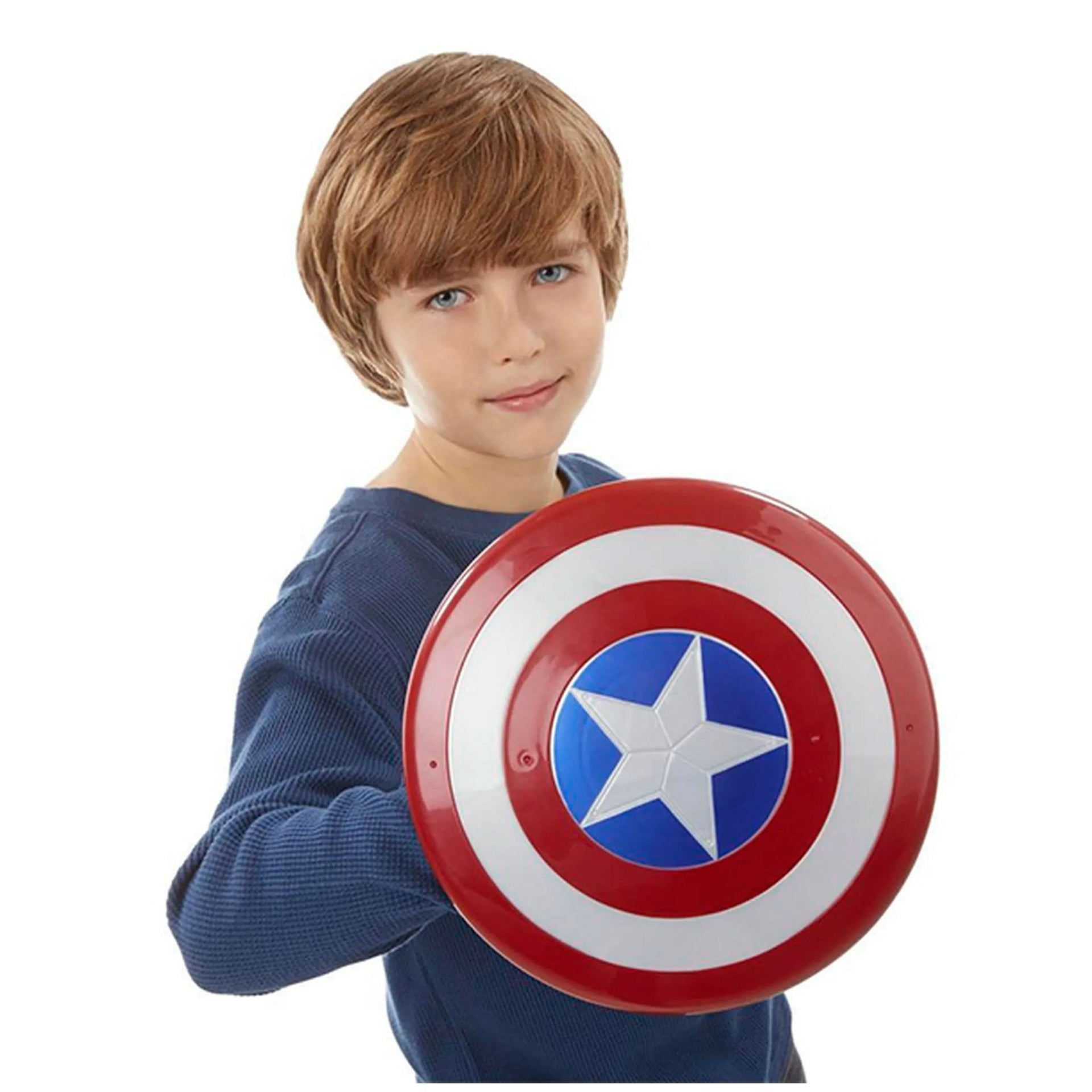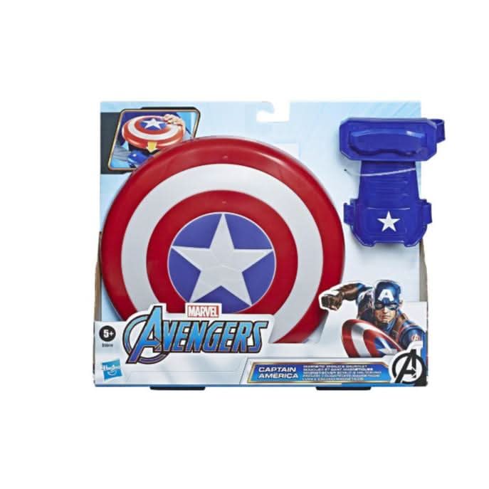 With this Captain America Magnetic Shield and Gauntlet, kids can imagine what it's like to be Captain America! The shield attaches to the magnetic wrist gauntlet like Cap's shield -- and can be thrown as a disc when removed, like Cap throws his shield in battle! With the Marvel Avengers Captain America Magnetic Shield and Gauntlet, aspiring heroes can imagine what it's like to join the battle for justice as the Avengers' most patriotic Super Hero.