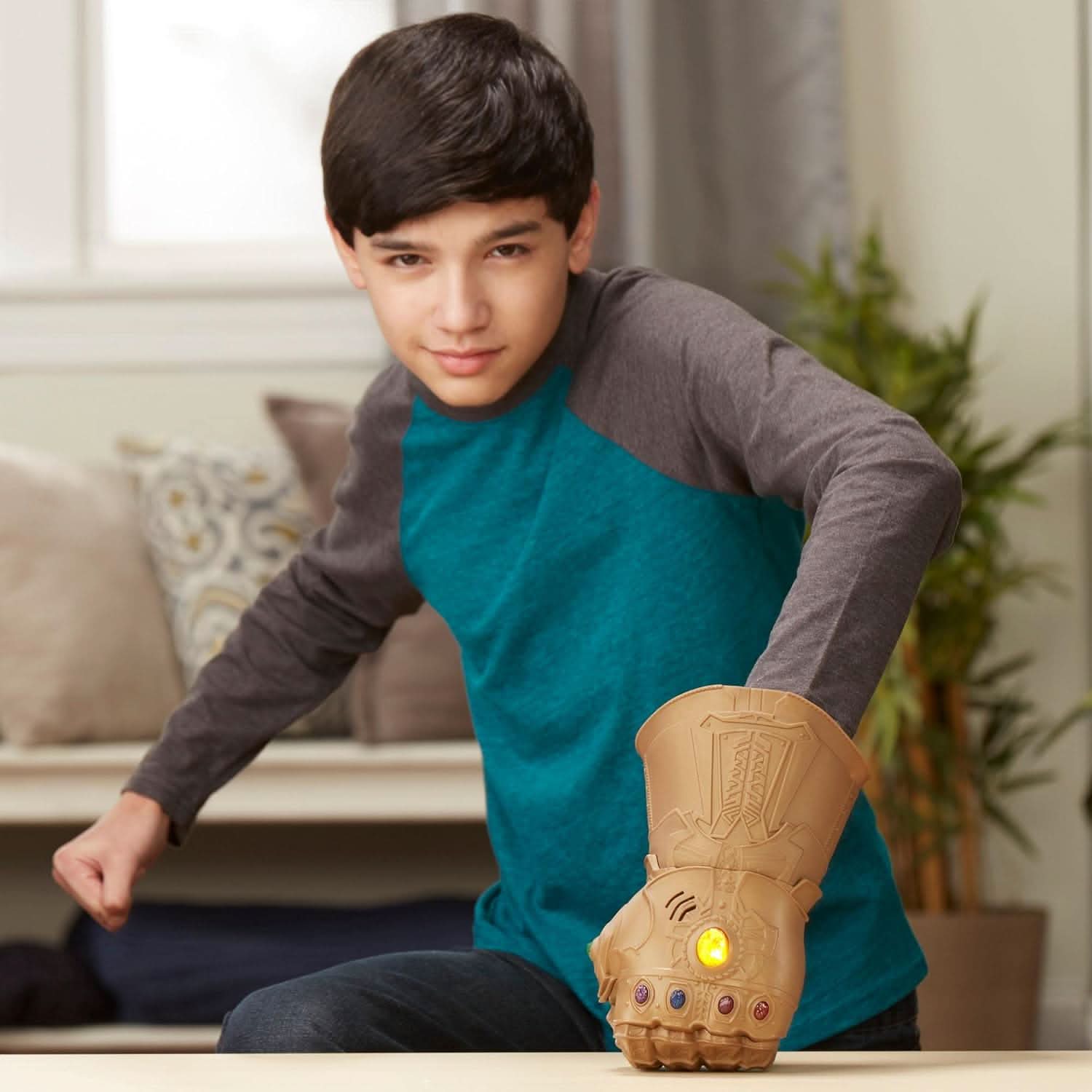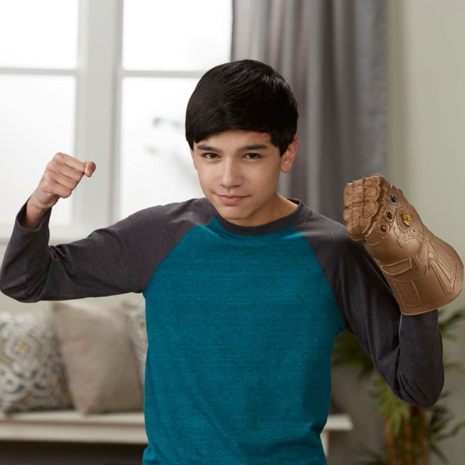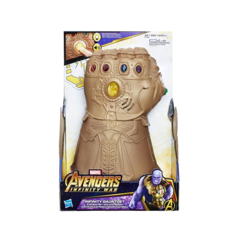 When the mad titan thanos wants to take over total control of the galaxy, he sets out on a mission to find the Infinity stones and store them in his impressive, golden infinity Gauntlet. Kids can imagine summoning the power of the Infinity stones and controlling the fate of the galaxy with the Infinity Gauntlet electronic fist, including lights and sounds! Push the centre button on the fist to light up the centre stone and to activate mighty sound FX! The Infinity Gauntlet electronic fist is inspired by the avengers: infinity war movie and is designed to fit most kid hand sizes.