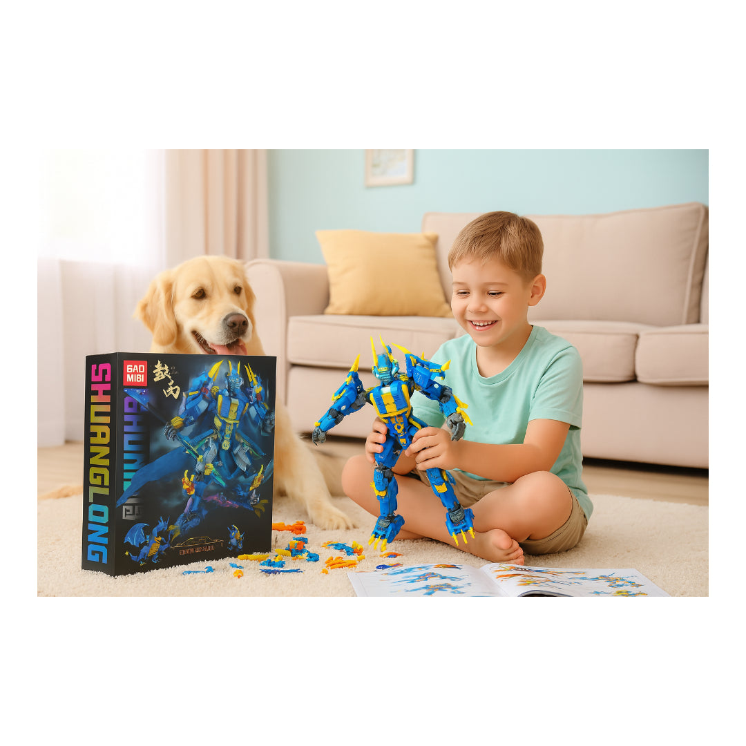 Unleash the power of mythical beasts and robotic might with the GAO Misi SHUANGLONG 4.0 Bing building set. Designed for advanced builders and mech enthusiasts, this detailed set transforms between a powerful armored robot and two majestic dragons. With striking color schemes, intricate details, and poseable joints, it’s a stunning display piece and an exciting build project.