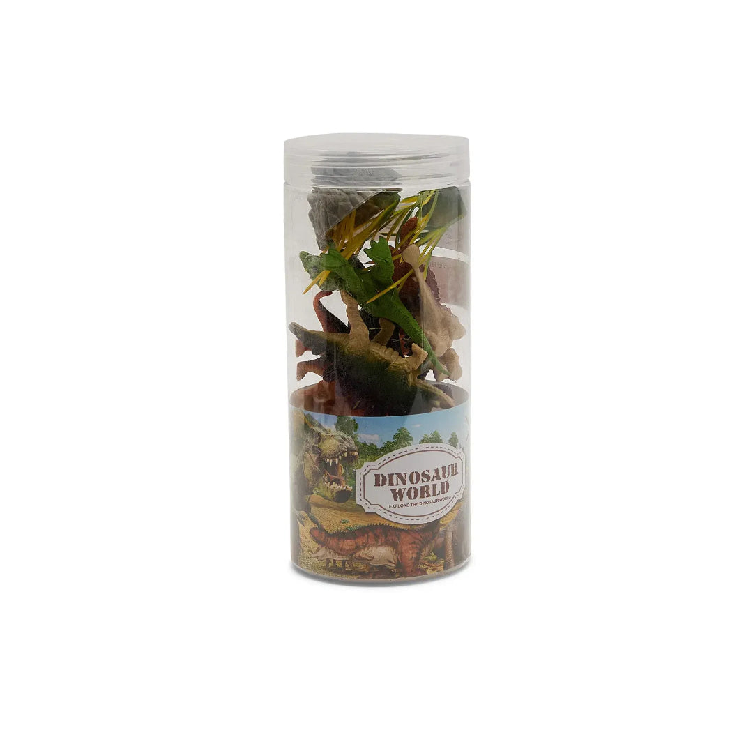 The tube includes 12 varieties of dinosaurs + 1 stone and 2 grasslands as accessories Glow-in-the-dark dinos: The tube includes 12 varieties of dinosaurs + 1 stone and 2 grasslands as accessories.