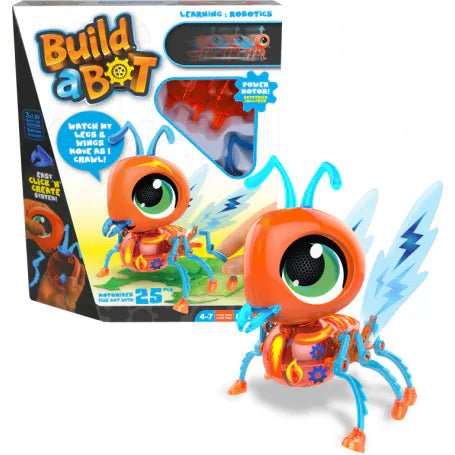 Your kid can learn about robotics and create a playtime pet at the same time with this fire ant. The educational toy is crafted with a nifty mechanism that sees parts click into place to ensure learning is both fun and easy. The toy bug has a power motor that operates its wings and legs as it crawls. Build, Customized and Play - Learning at the same time. Collect all the Build a Bot electronic pets and you can mix and match their pieces to make new and exciting characters! Very easy to make with a simple click and create mechanism. Build a Bot makes S. T. E. M (Science, Technology, Engineering and Mathematics) learning fun.