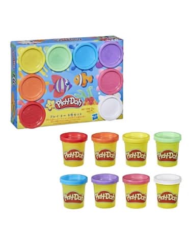 Bundle of 8 Pack of Rainbow Compound + 8 Pack of Neon Compound. This big pack of Play-Doh modeling compound holds an endless array of creative possibilities! Little hands can roll, twist and shape these colors into any form that strikes their fancies, then mash them up and start all over. Perfect for play dates and parties, the Rainbow Starter Pack is just the ticket for big Play-Doh fun.
