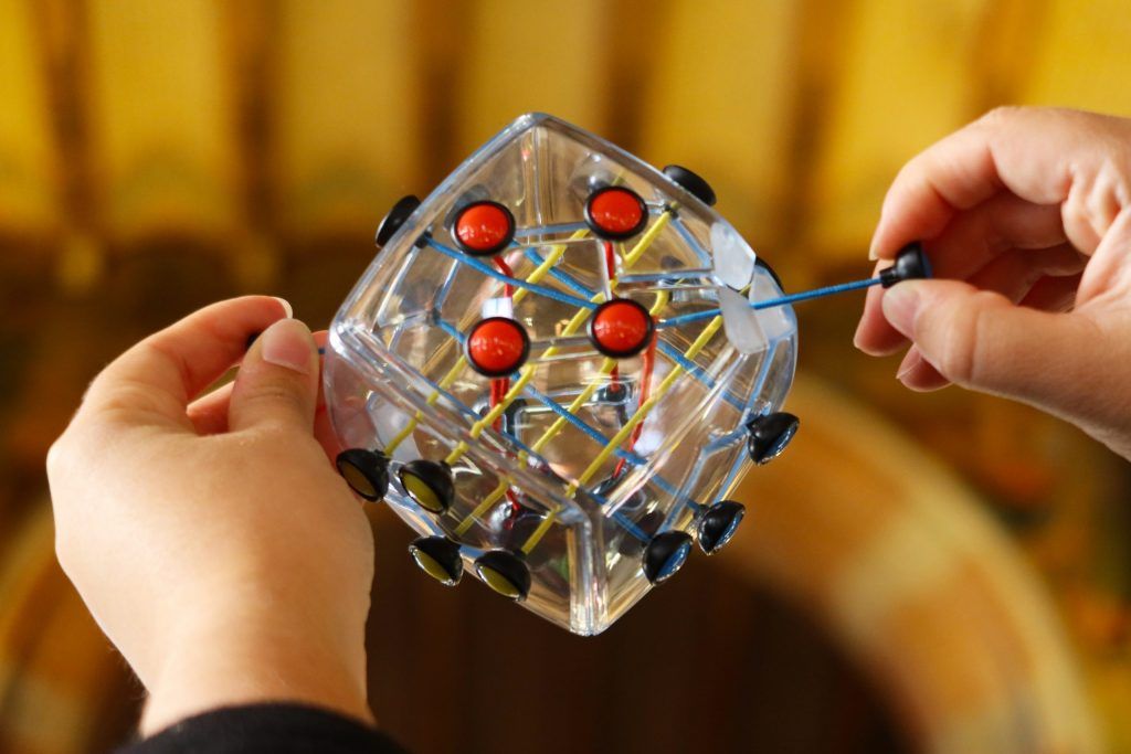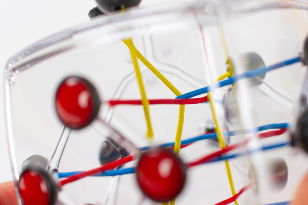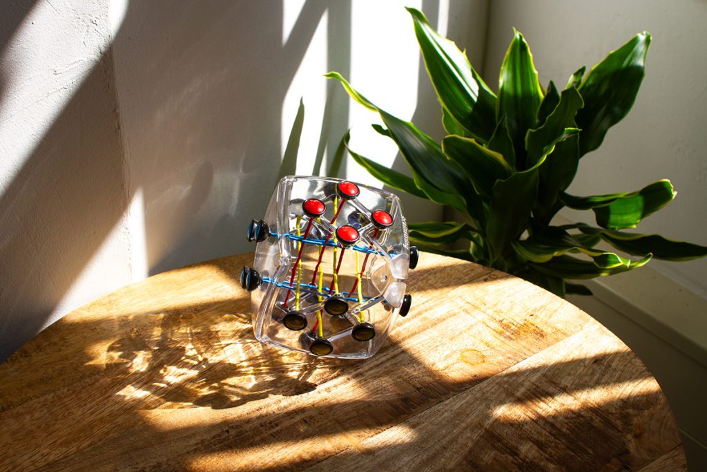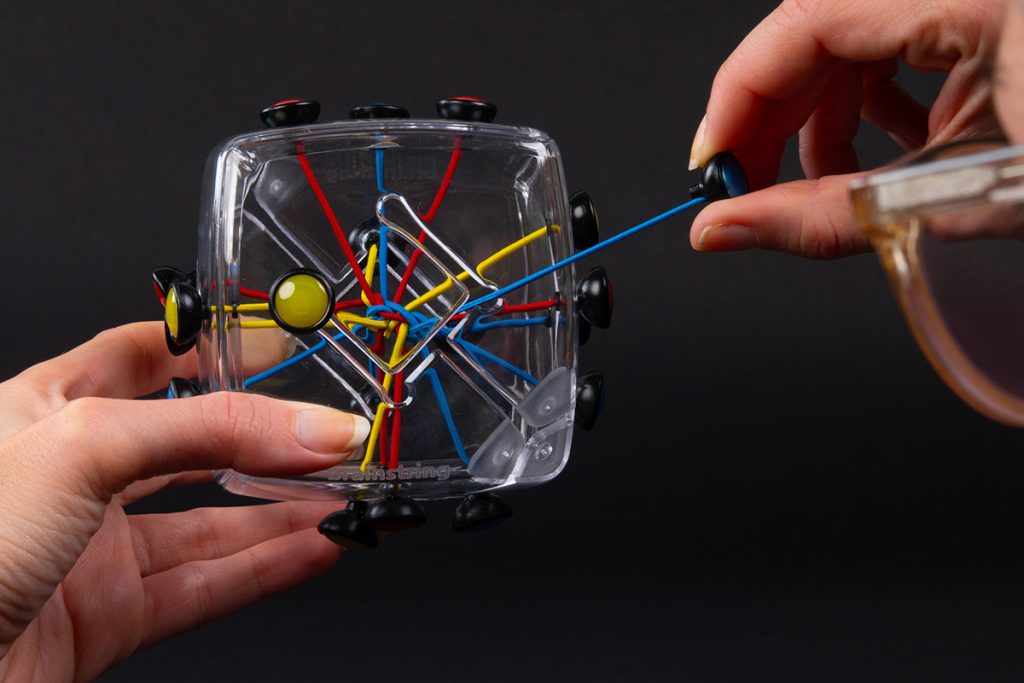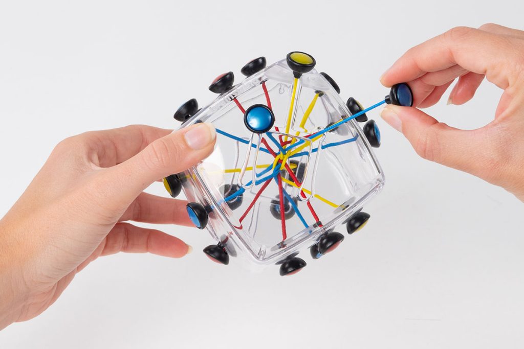 The mystery of Brainstring Original isn’t just how to untie a twisted ‘knot’ of strings in the centre, but how it can be that all its strings can be interchanged— WITHOUT creating a knot! Four groups of different coloured strings, four strings per group, moving up, down and around all six sides of a polycarbonate shell… beyond just tying or untying a knot, what kind of beautiful symmetries can you create? Brainstring Original isn’t just a puzzle — it’s a work of art.