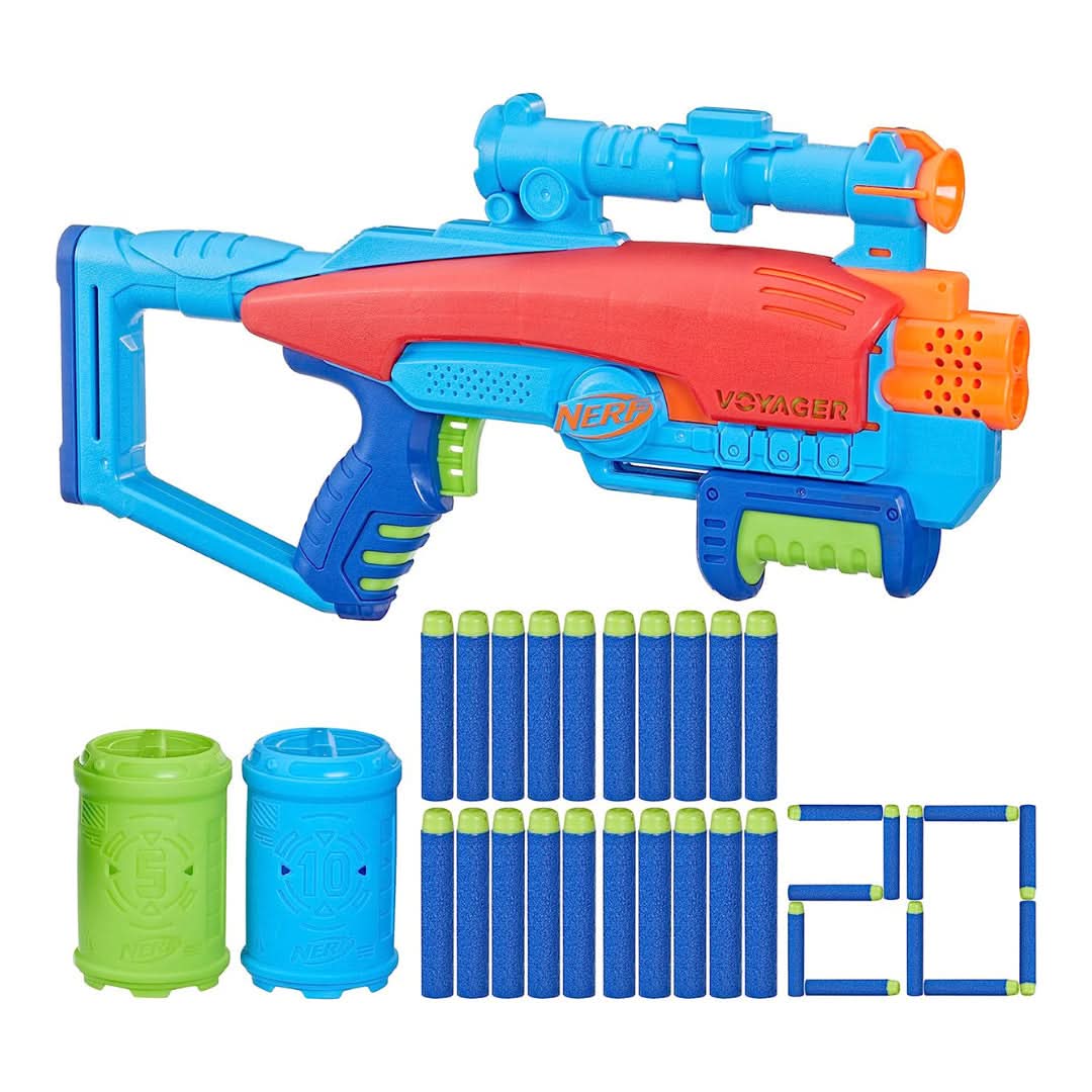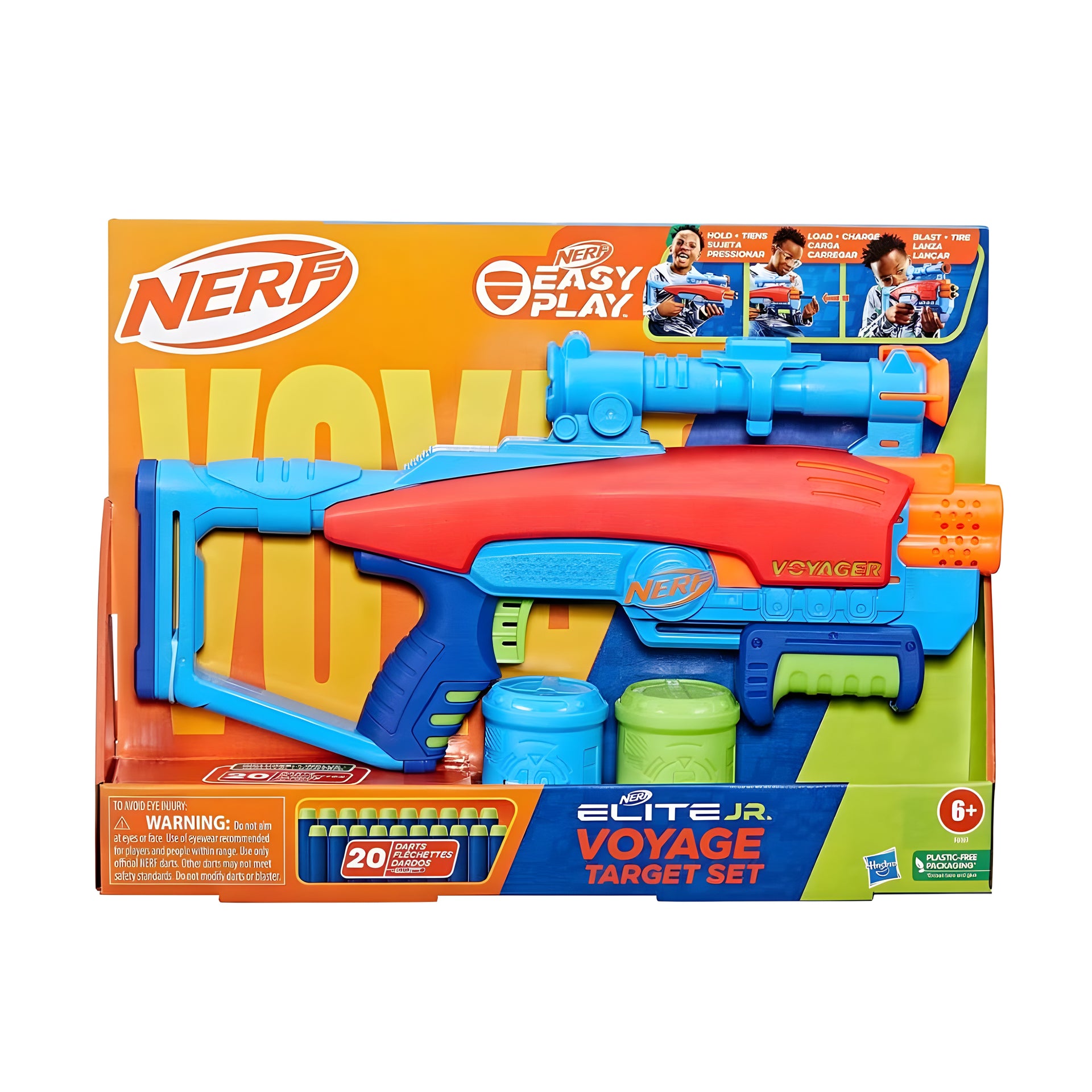 Nerf Elite Junior easy-play Nerf blasters are designed for boys and girls who are blasting into Nerf battles for the first time. Special features make them easy to play with, so kids will be playing exciting Nerf indoor and outdoor games in no time. Nerf Elite Junior blasters are easy to hold, sized to fit comfortably in small hands, and lightweight for easy carrying in kids outdoor games.