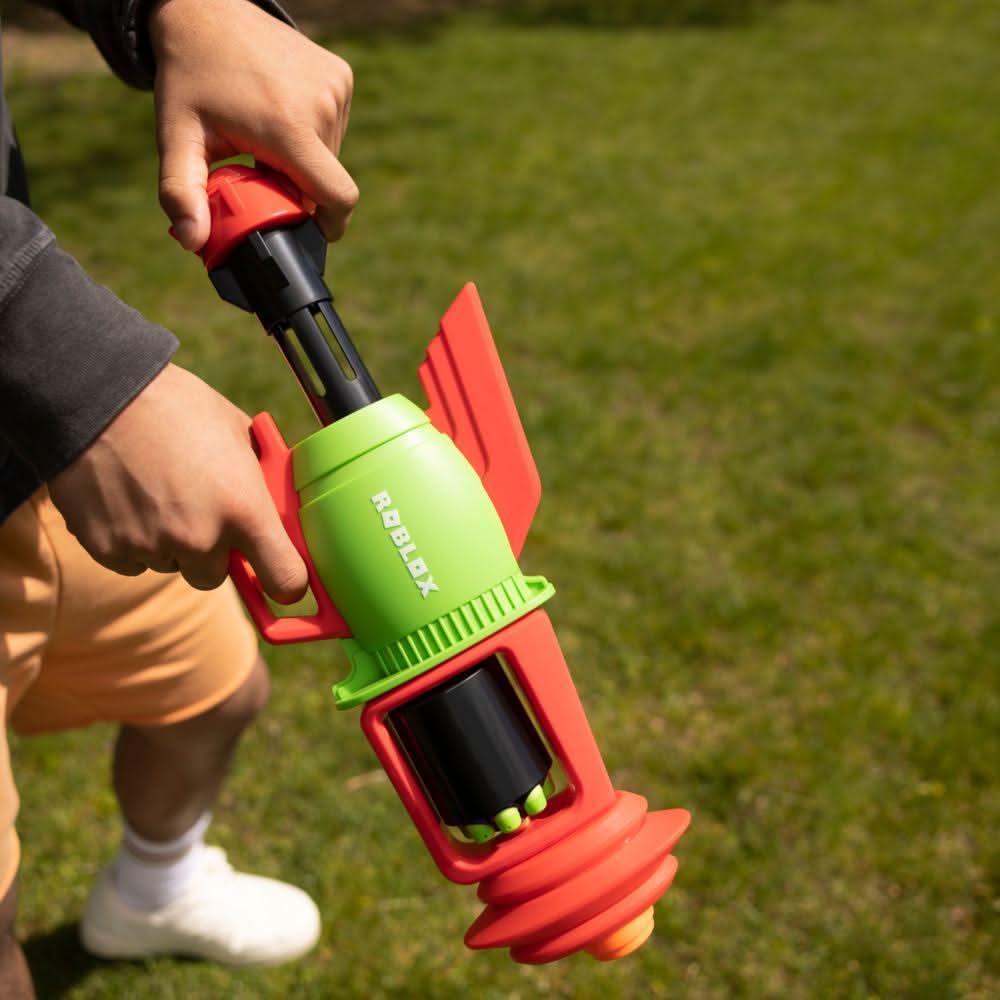 This Nerf Roblox Build A Boat Treasure: Spacelock Ray dart blaster takes its inspiration from the Roblox experience Build A Boat For Treasure by Chillz Studios! It includes a special code that allows you to redeem an exclusive virtual item on Roblox*. The blaster captures the look of a futuristic ray gun to blast you into exciting indoor and outdoor games. The Roblox-inspired design makes it an awesome gift for boys and girls who are Roblox fans, and a great way for Nerf fans to build their Nerf blaster stockpiles. The Spacelock Ray dart blaster is easy to load, prime, and fire, and features an 8-dart rotating drum, so you can unleash 8 darts in a row. Load darts into the drum, pull back the priming handle, and press the trigger to fire 1 dart. The blaster includes 8 Nerf Elite foam darts. Look for other Nerf Roblox blasters to expand your collection and be ready for battle!