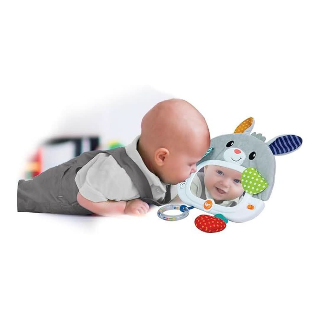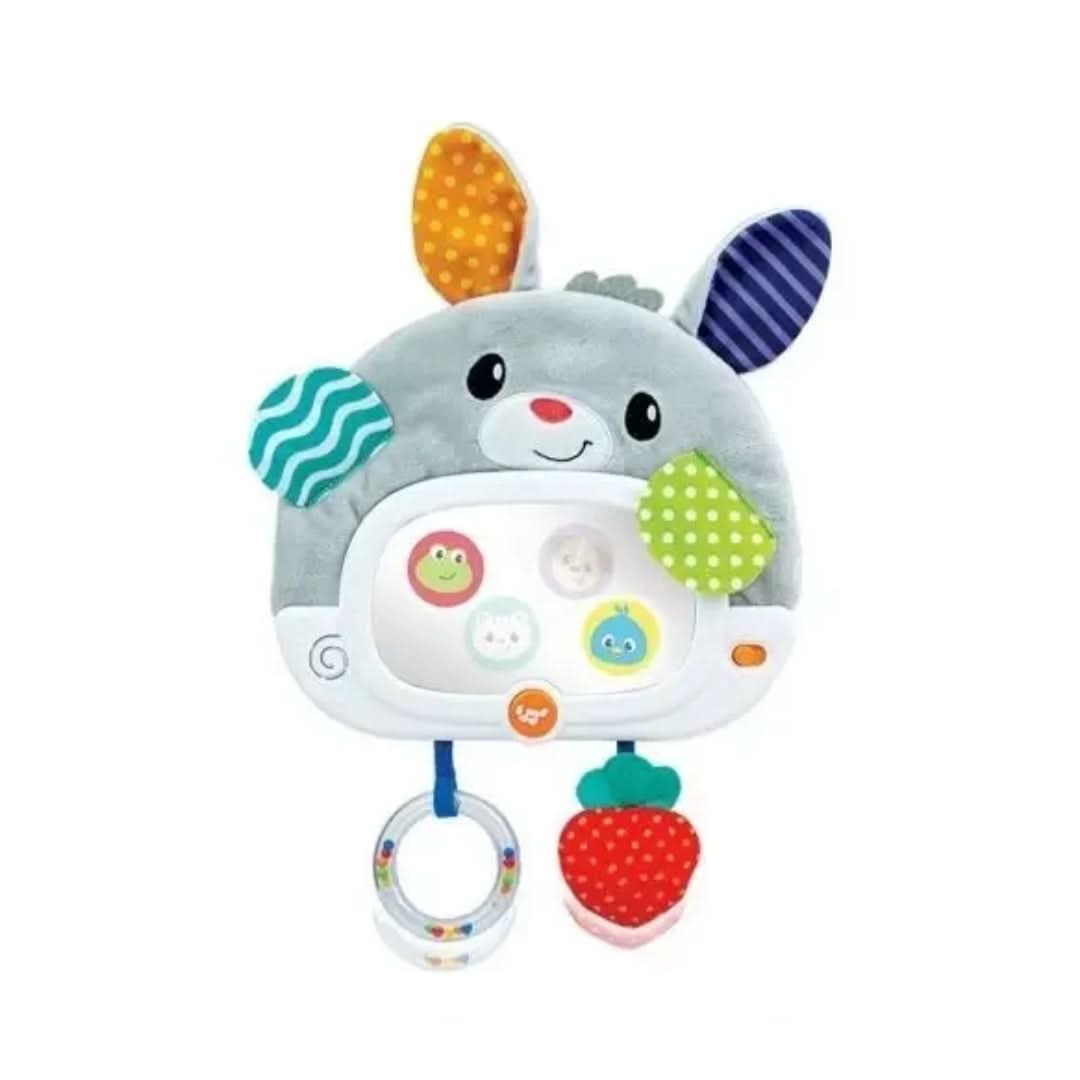 "Baby-safe mirror with 4 hidden patterns and light-up effects