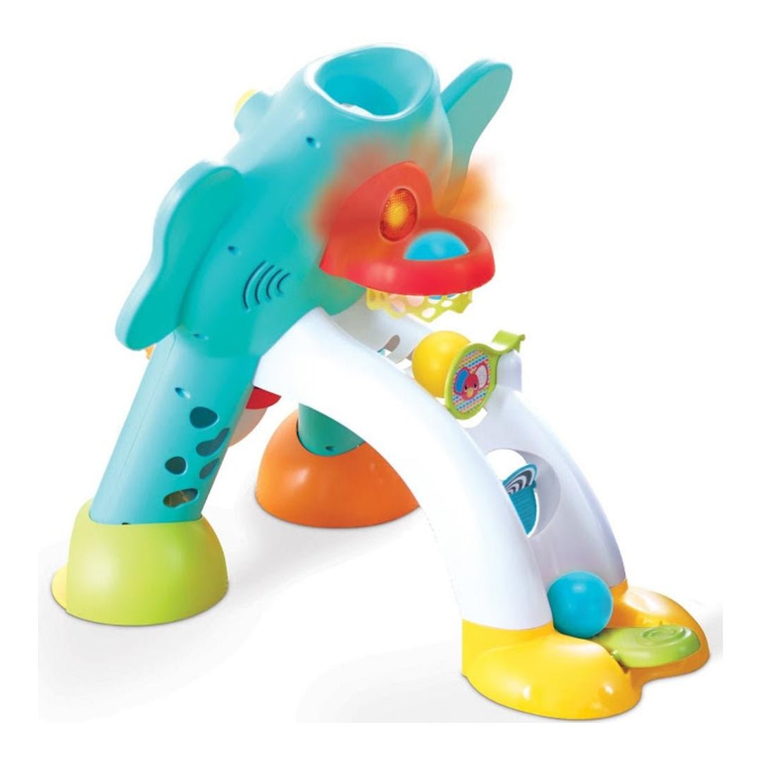 In the ears of the elephant, there are rings on an arc and a ball that can be twisted.