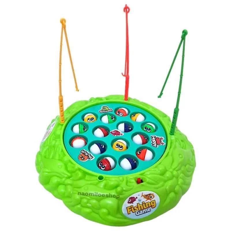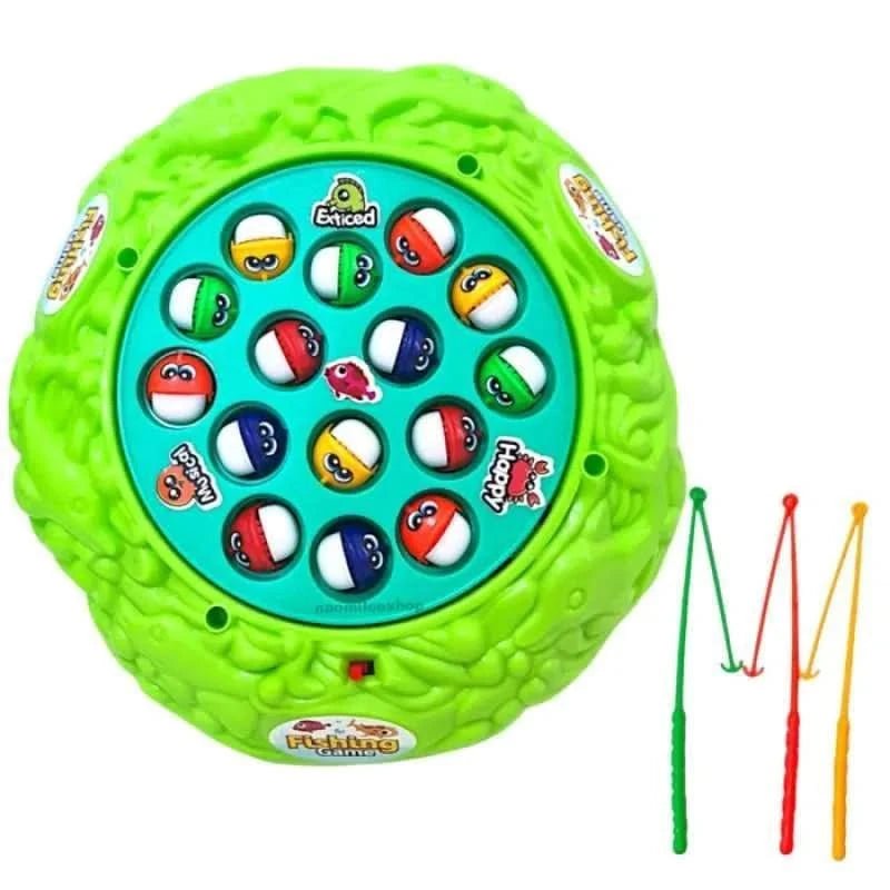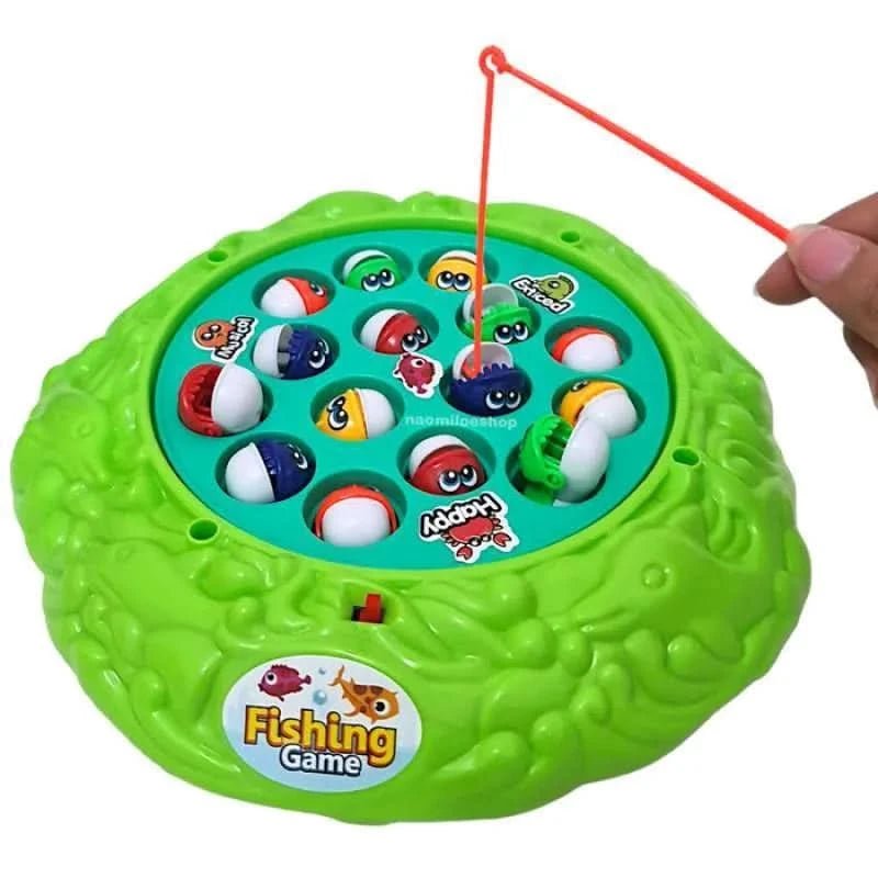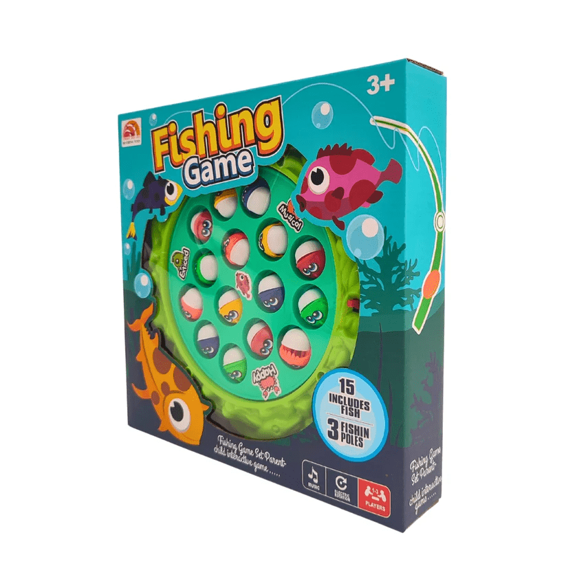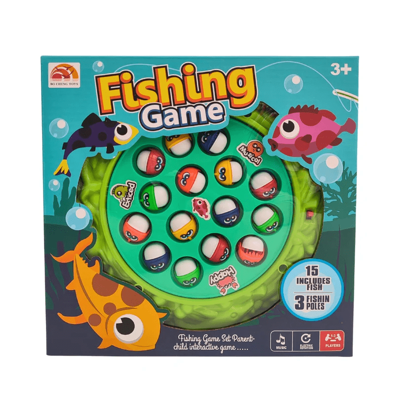 Fishing Game rotating large fish base, 3 fishing rods, 15 colorful fish. Game of catching fish with a fishing rod while swimming around a whale. Encourages hand eye coordination, concentration, quick reflexes. This fun, fast paced game can be enjoyed by players of all ages, ages 3 and up. Press the button to spin the board and try to catch your fish. With fast paced, fun gameplay, this game is perfect for any family or friends playtime. Great for improving fine motor skills and visual motor coordination. 2 x 1.5 V AA batteries Not included. Product dimensions: 23 x 22.5 x 4cm. Age: 3+
