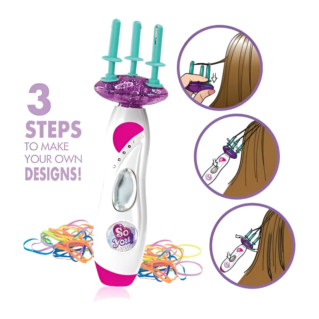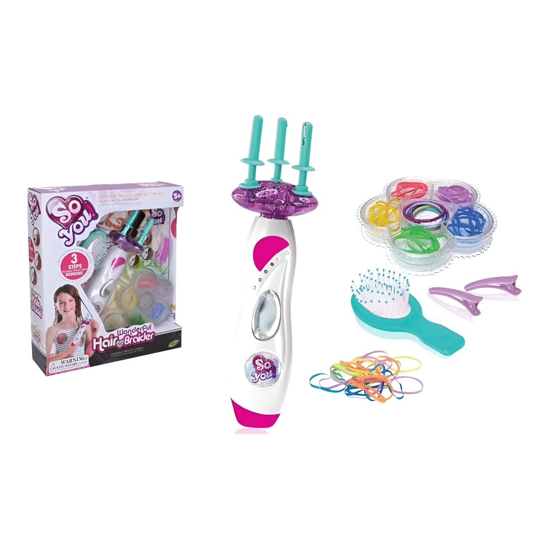 This Wonderful Hair Braider is a hairstyling set for your child. The set contains a styling tool, cute clips, and colorful hair ties. Using these, your kid can get into the creative hairstylist mode and create chic, simple, glam, sophisticated, and a wide variety of hairdos.