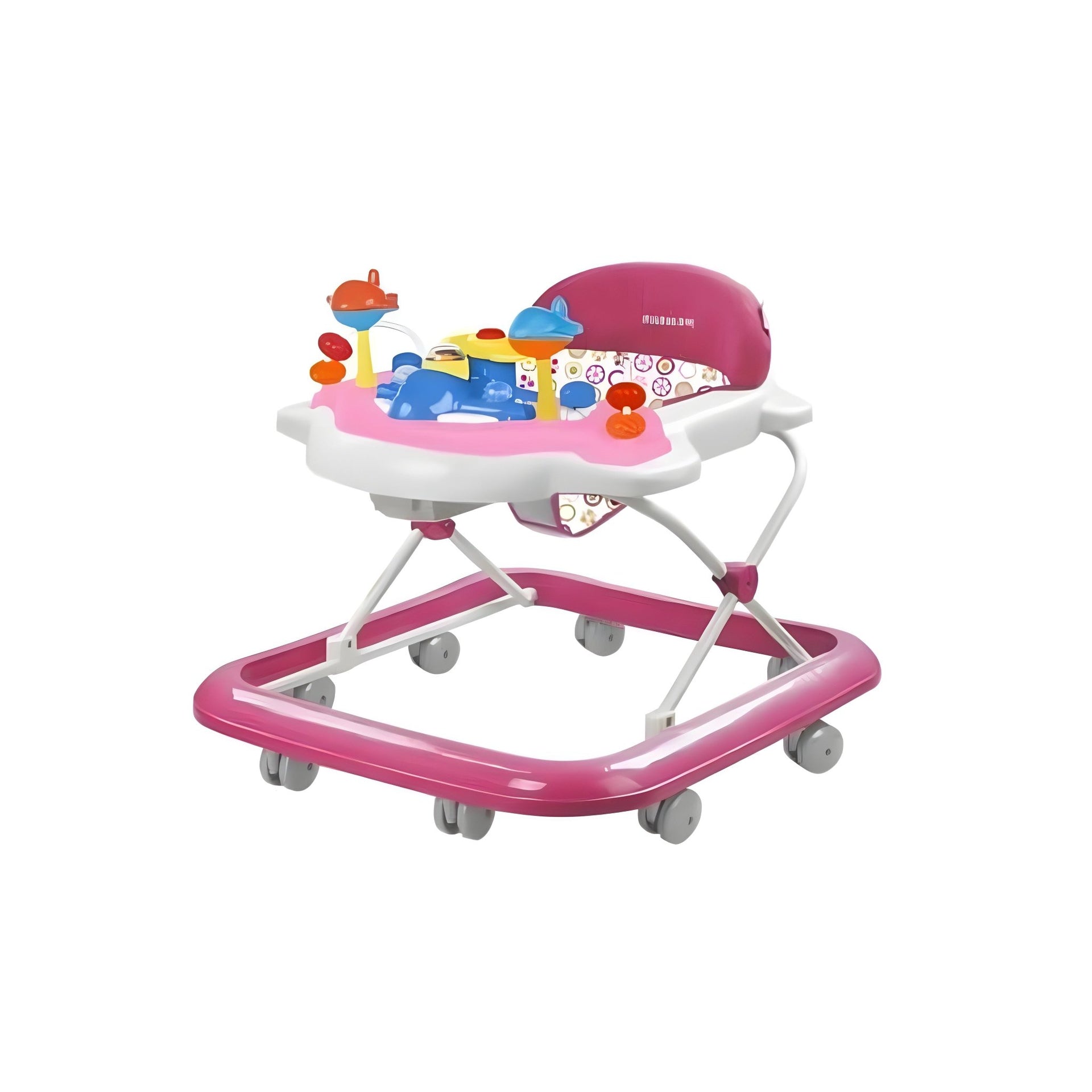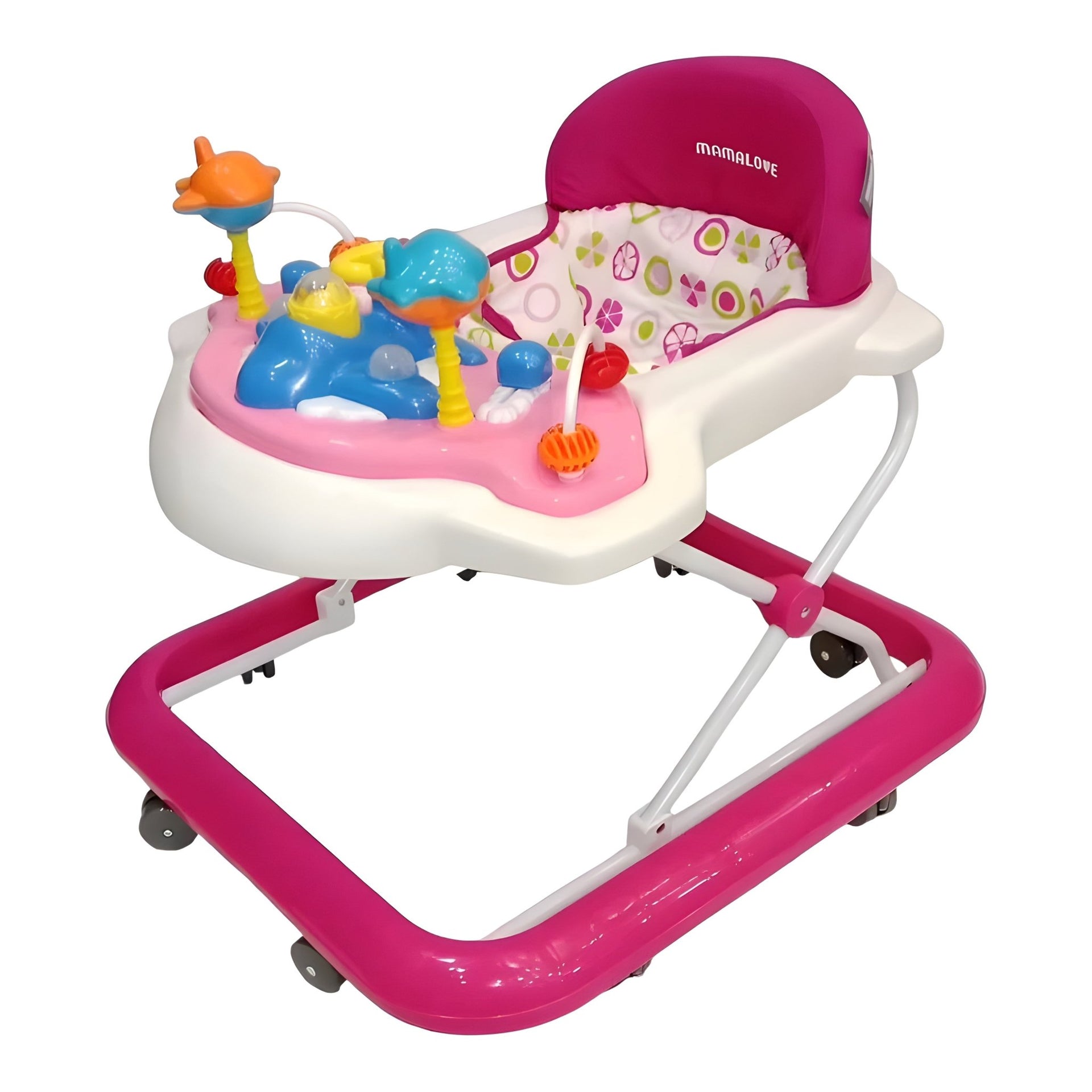 Equipped with built-in music to keep your baby engaged and entertained. Exciting toy tray with sensory elements like rotating toys and interactive buttons. Stimulates visual, auditory, and motor skills development. Smooth & Safe Mobility. 360° swivel wheels for easy movement in all directions. Anti-slip base with safety stoppers to prevent tipping or slipping. Ensures stable and controlled movement on different surfaces. Convenient & Foldable Design. Compact & foldable for easy storage and travel. Ideal for small spaces and hassle-free transportation. Product Specifications:. Brand: Mama love. Color: Pink