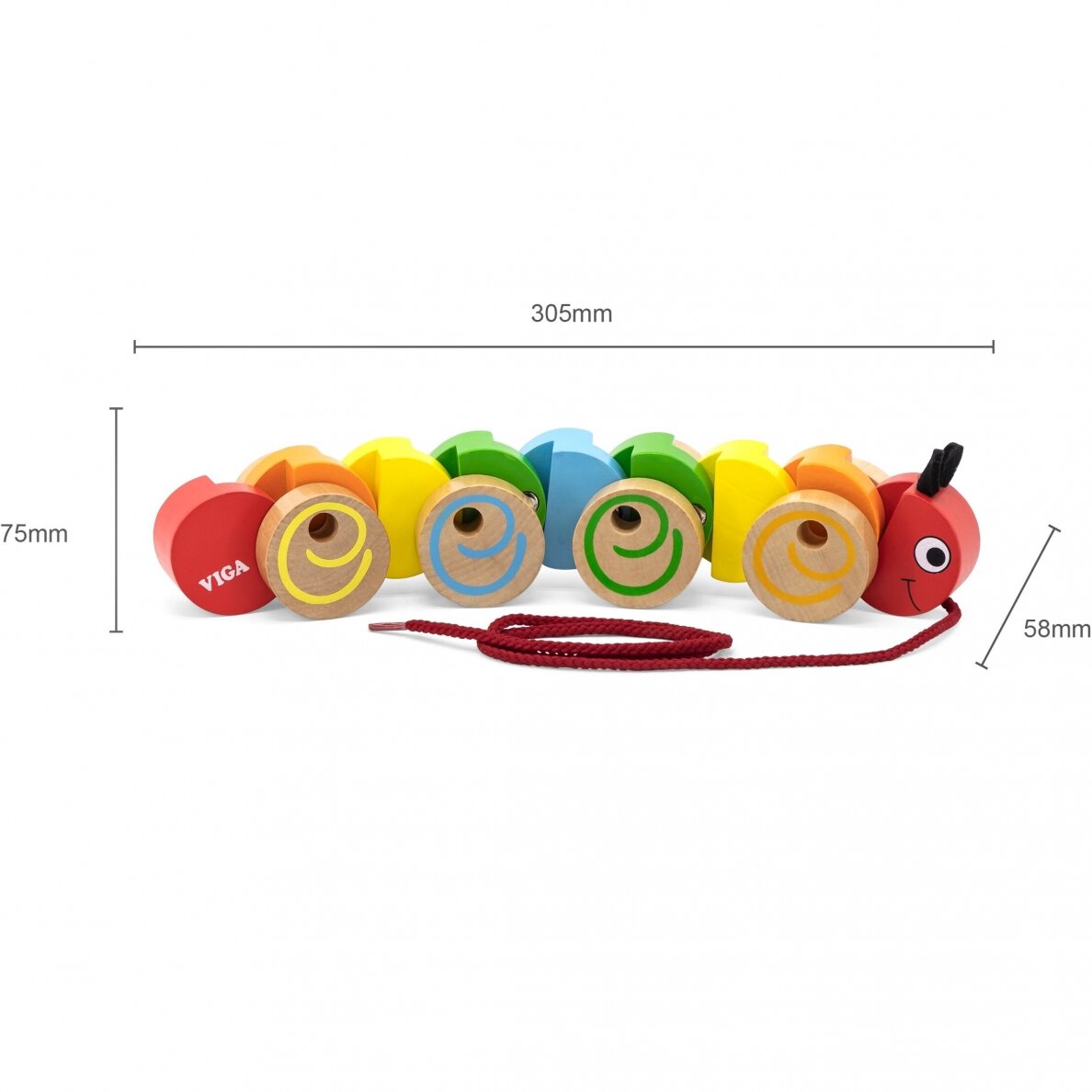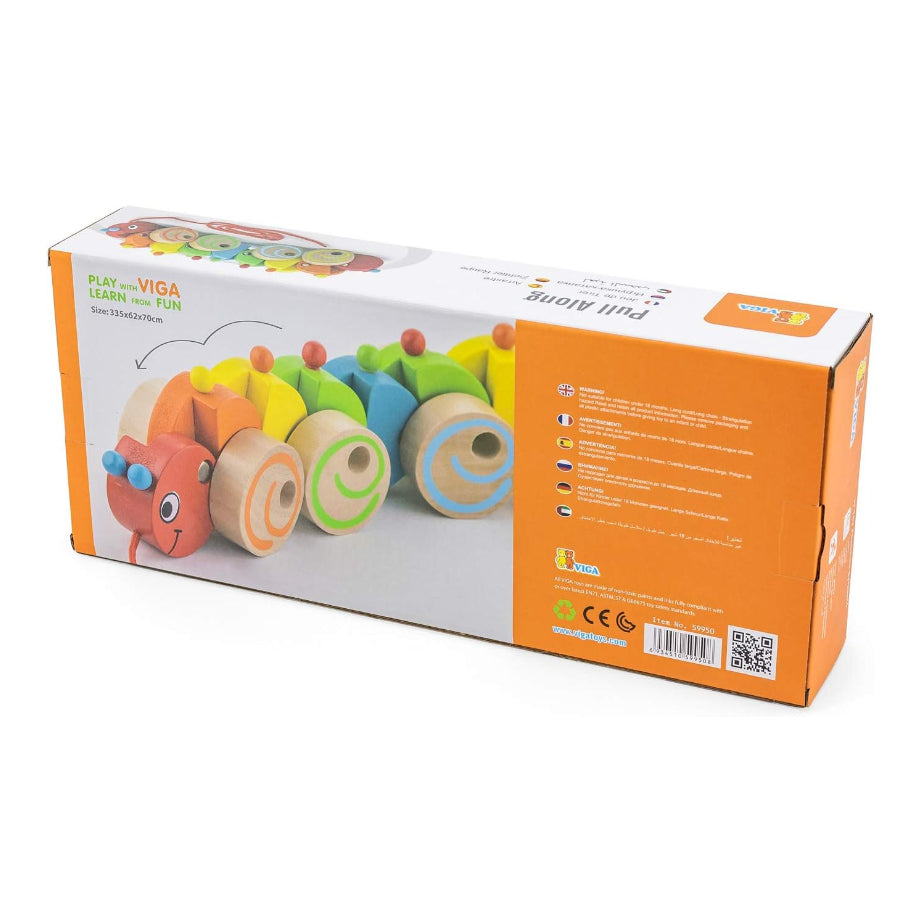 Easy to attract toddlers to walk and run. 70 cm pull-along cord. Encourages the creativity and hand-eye co-ordination skills.