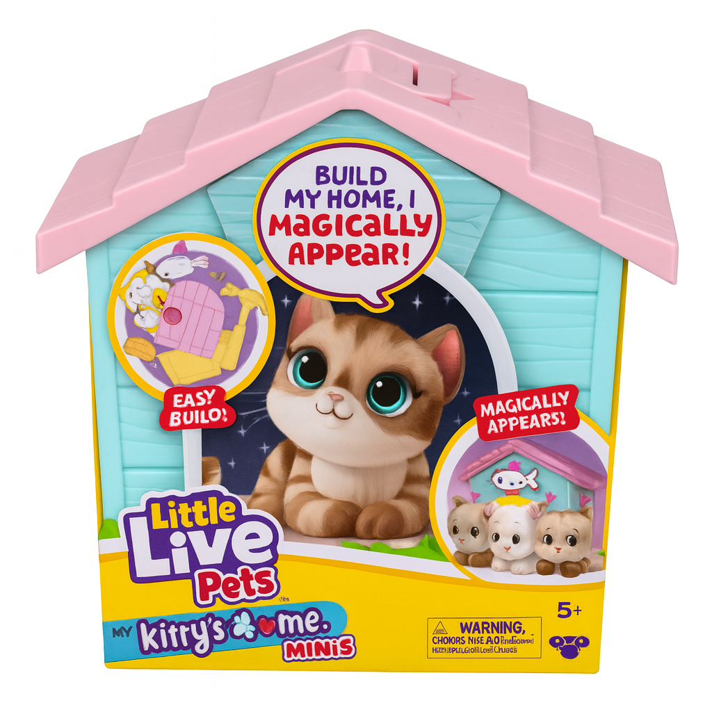 - My Kitty's Home Minis comes as a house playset with everything you need to build and complete your kitty's home! Attach the door and the welcome mat, decorate with stickers and hammer in the name plate!