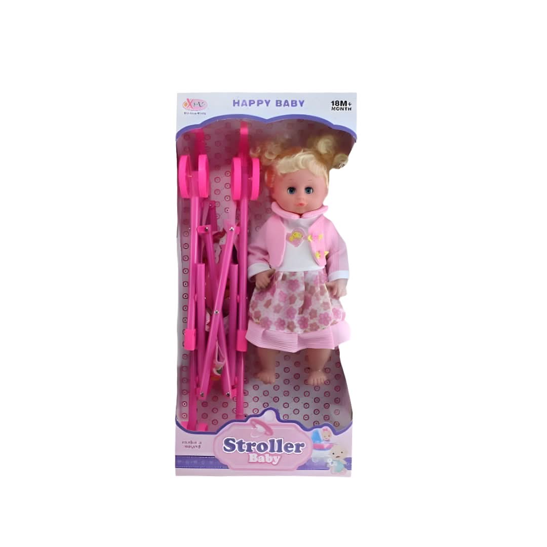 Introducing the Doll with Stroller Toy, the perfect accessory for your little one's imaginative playtime. This adorable stroller is designed with meticulous attention to detail, featuring a sturdy construction and charming design that mirrors real-life strollers. With smooth rolling wheels and a comfortable handle, it's easy for kids to push their favorite dolls or plush toys around the house or on outdoor adventures. The spacious seat provides ample room for dolls of various sizes, while the foldable design makes storage a breeze. Encourage nurturing and role playing skills as your child takes their dolls for a stroll in style with this delightful Doll Stroller Toy.