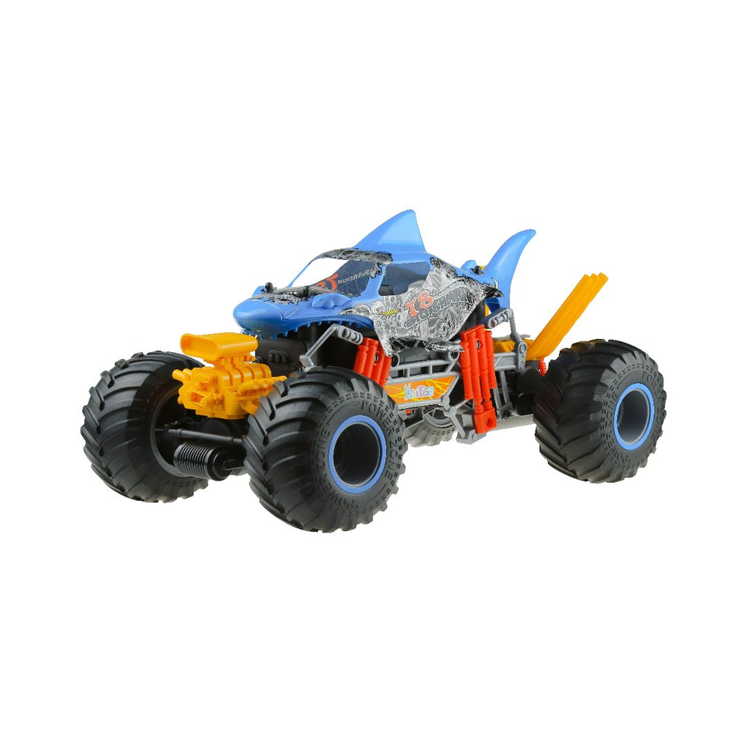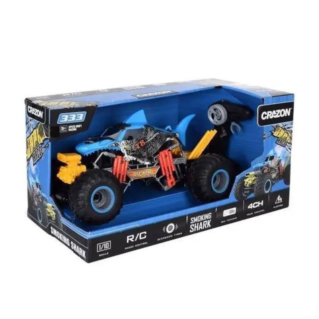 Monster truck shaped like a shark and a very aggressive engine. It is a 1:10 scale car with different functions, blowing smoke or simulating engine vibration. It also includes a rechargeable lithium battery and has an autonomy of about 25 minutes. Reaches a maximum speed of 15km/H. Not recommended for children under 3 years old. Package Size: 53 x 26 27.5cm.