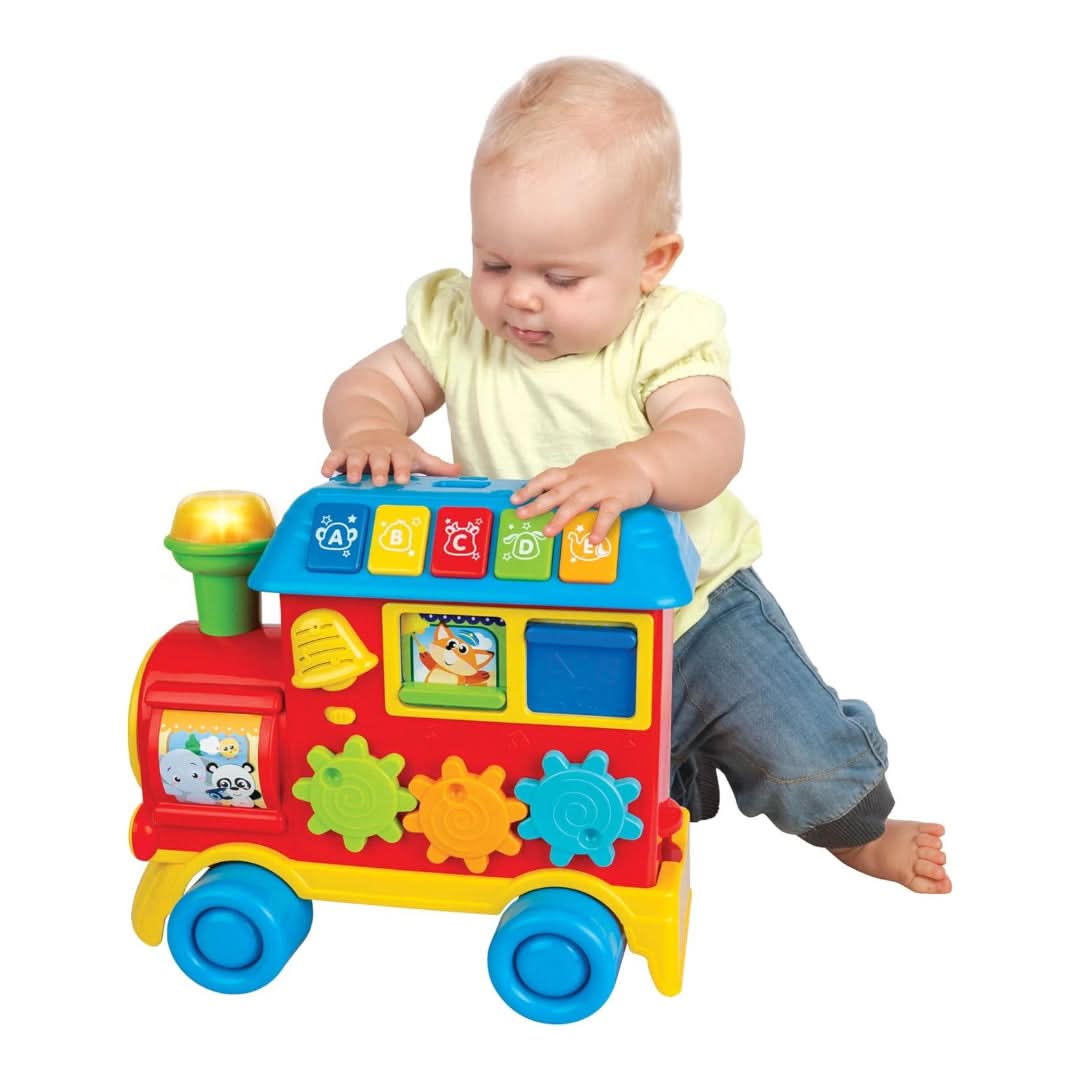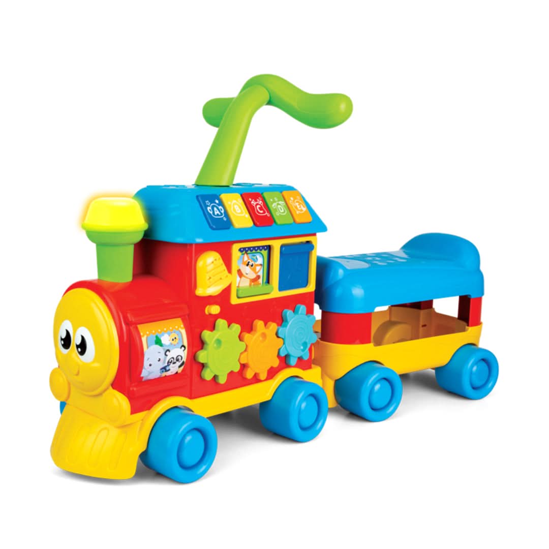"Grow-with-me train with 3 levels of play - floor play, push around walker, ride-on