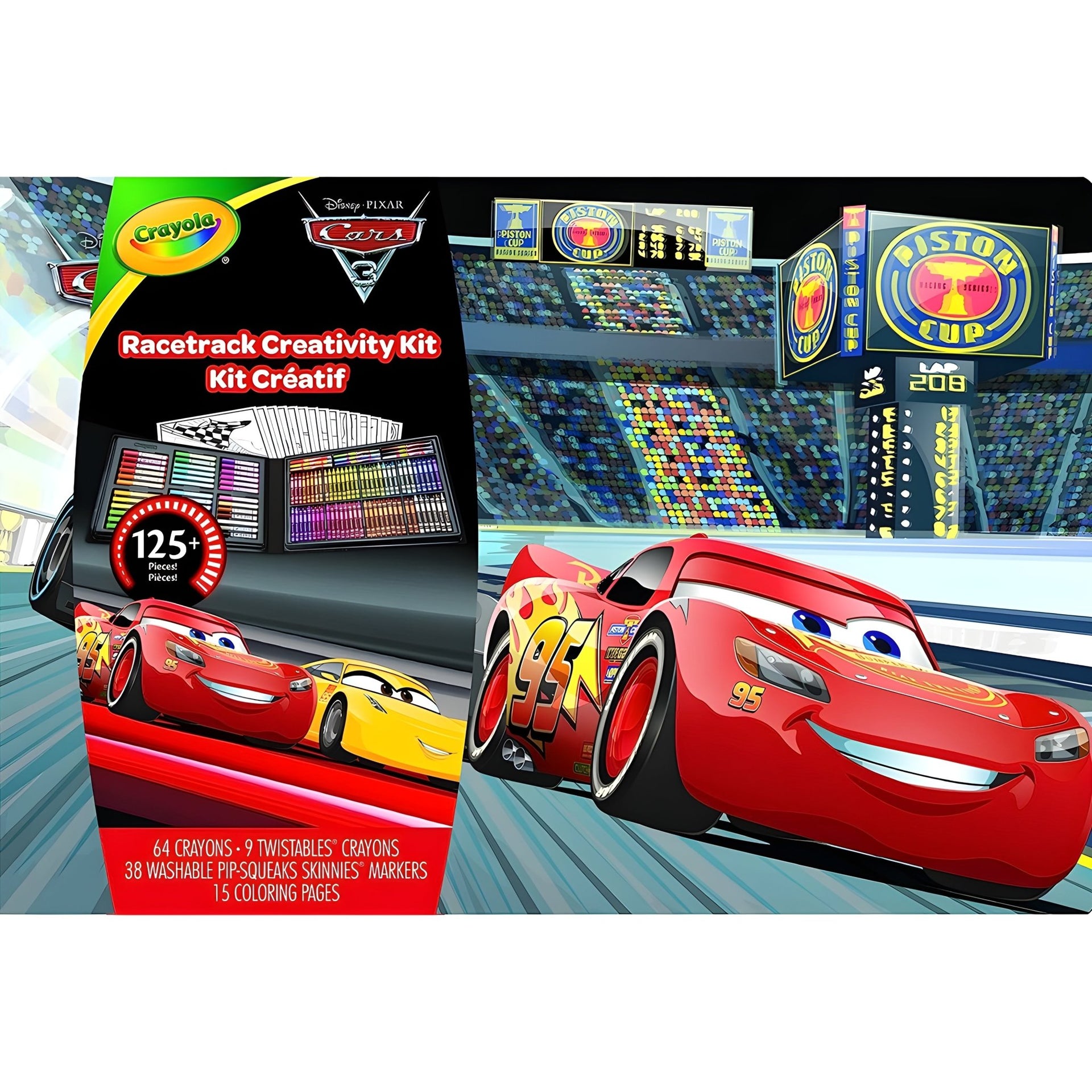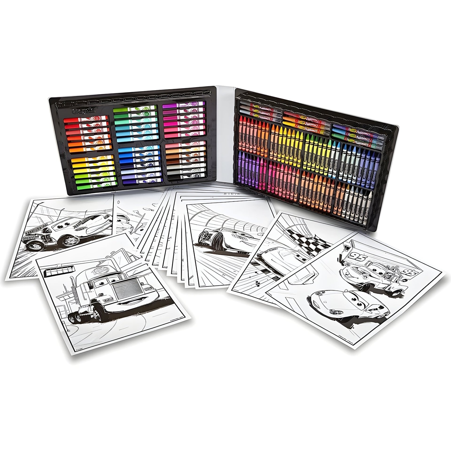 Discover the world of Cars 3 with this fantastic coloring case! Perfect for little artists to explore their creativity and have fun with friends. Features: 64 wax crayons: A wide range of colors for endless creativity. 38 washable mini coloring pens: Easy to clean up after creative sessions. 9 mini twistable wax crayons: Convenient and mess-free coloring tools. 15 sheets of coloring paper: Ready for imaginative artwork. Encourages color combination skills and artistic expression. Suitable for children aged 3 years and above. Let your kids have a great time coloring these cute and quirky characters from Crayola. Easy way to provide kids with an engaging. Fun and successful experience.