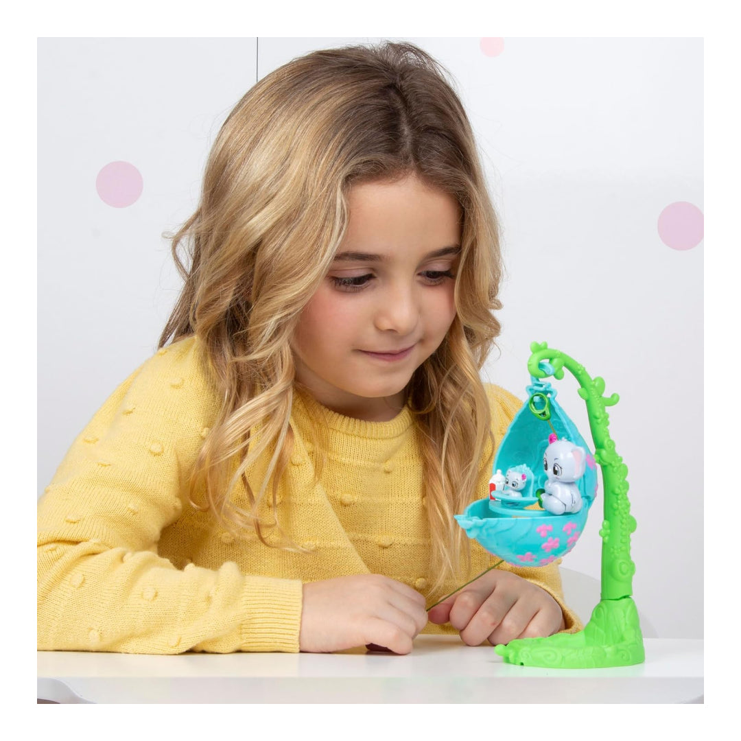 The Muchies Family Pack is a blue flower house with engraved mini pink flowers. In this pack you will find a little elephant who loves popcorn with his baby. Climb to the top of the flower with your Cutie Climbers and WOW... discover his little baby inside on his chair with a feeding bottle! For added fun, you can also connect the strings to create necklaces, bracelets and amazing key chains!