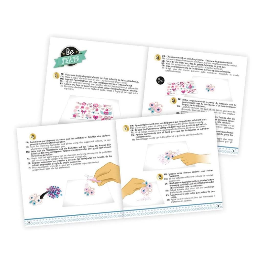 Choose your design, pour on the coloured micro-beads, peel off your Tattoo and stick it on your skin for a trendy look! Instruction sheet in colour. Recommended age: 8 years +