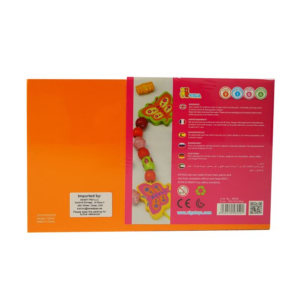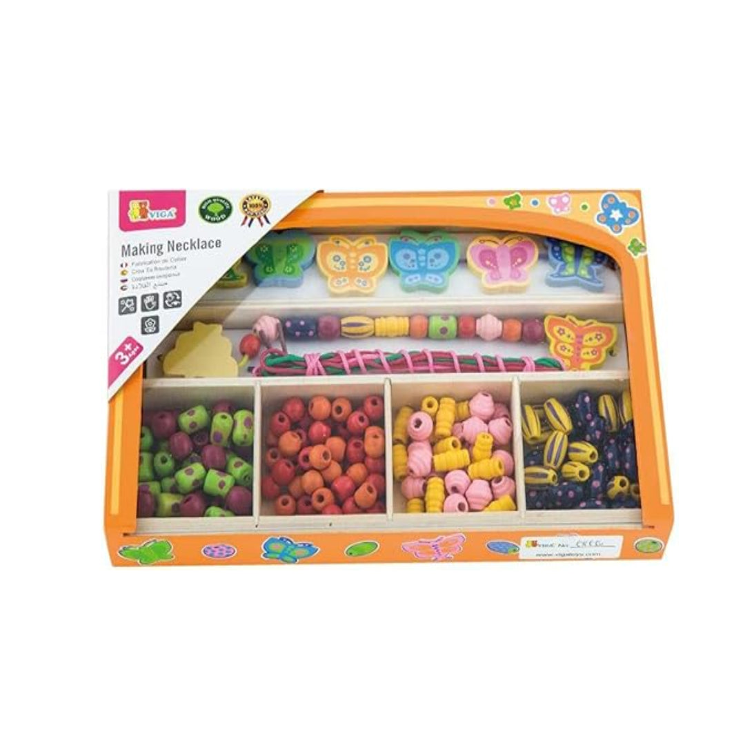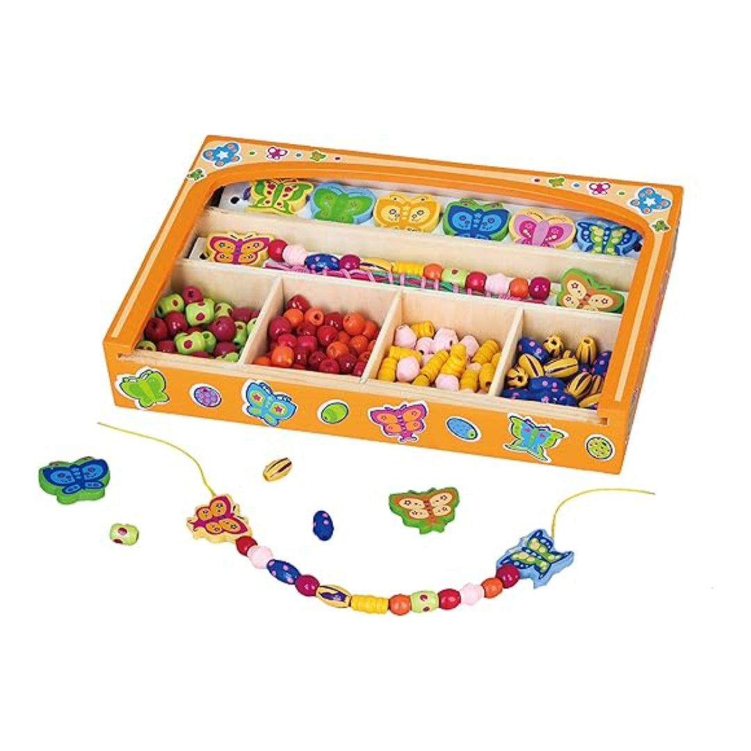 This wooden bead set is packed in a handy wooden box, allowing kids to easily store their beads.