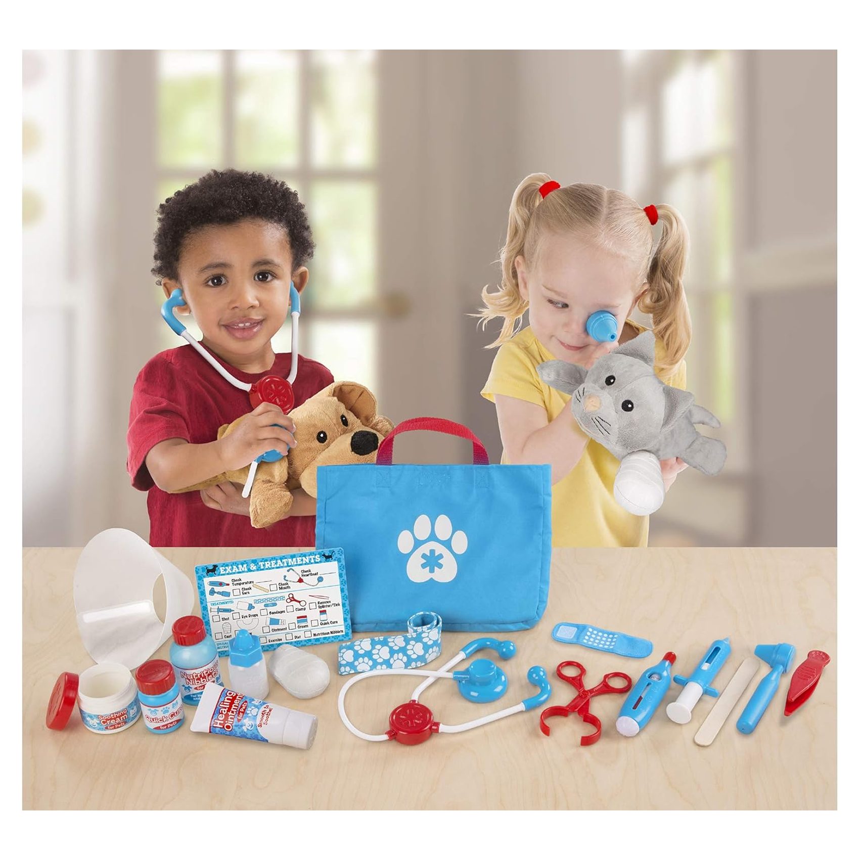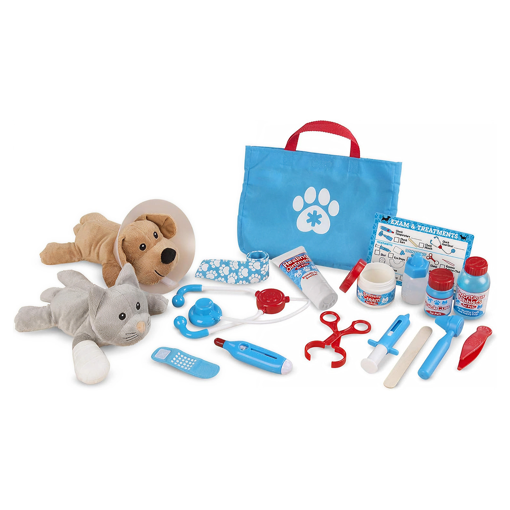 - Melissa & Doug Examine & Treat Pet Vet Play Set – 24 Piece Pretend Play Veterinary Kit