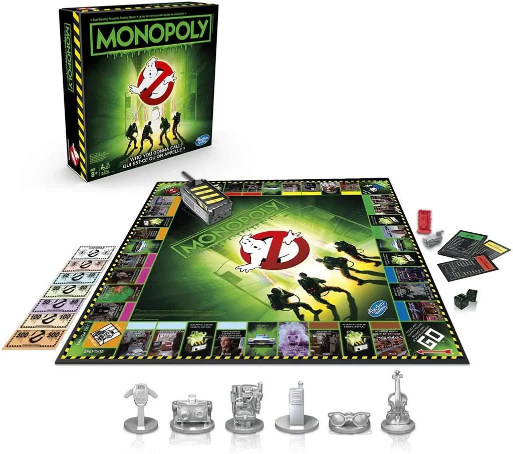 In this Monopoly Board Game: Ghostbusters Edition, players travel around the board buying up Ghostbusting contracts. The game features scenes, characters, tokens, and artwork inspired by the original Ghostbuster movie. Landing on a Supernatural Entity space has players teaming up to battle Slimer, Stay Puft, Library Ghost, or Vinz Clortho to save the city! The last player with petty cash when all other players have gone bankrupt wins!
