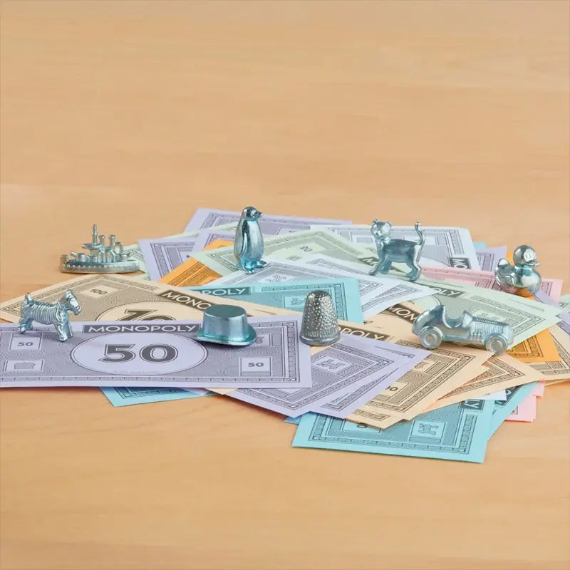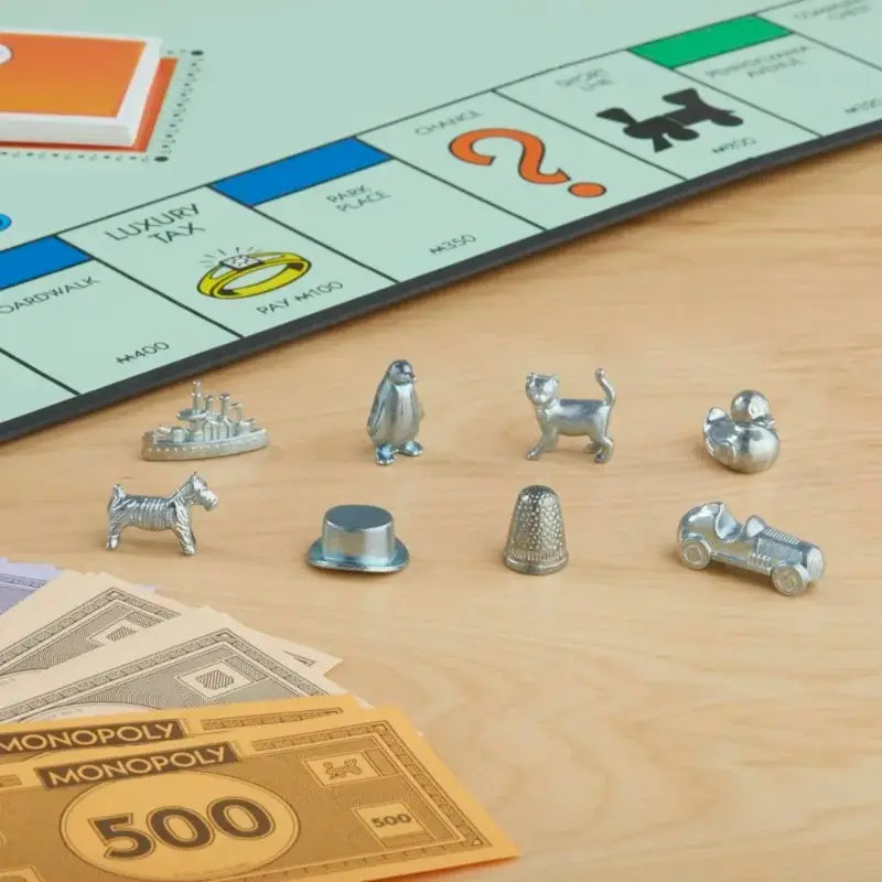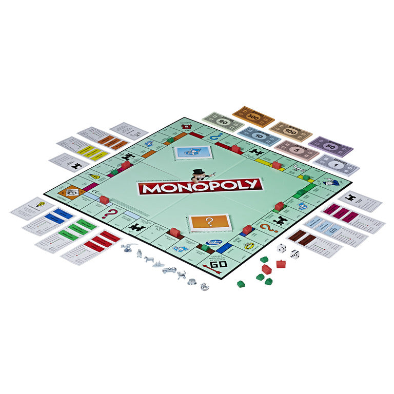 Build a property empire in the iconic Monopoly board game. Your fortunes could change with the roll of the dice as you move around the board developing properties, paying rent, drawing Chance cards and passing Go. Will you bankrupt your opponents, go to jail, or lose it all? Monopoly Classic sees players collecting property colour sets to start their empire. When you own all the properties in a colour group, you can start to build houses. The more you build, the higher the rent players who land on your property have to pay. Once a player has 4 houses on each property of a group, they can start building hotels to rake in even higher rents. But other players are building their own empires – and if you can’t pay their rent, you could lose it all. The Monopoly Classic game now features an updated line up of tokens, with the Rubber Ducky, T-Rex and Penguin now starring alongside old favourites like the Dog and Top Hat. 2-6 Players. Ages 8+.