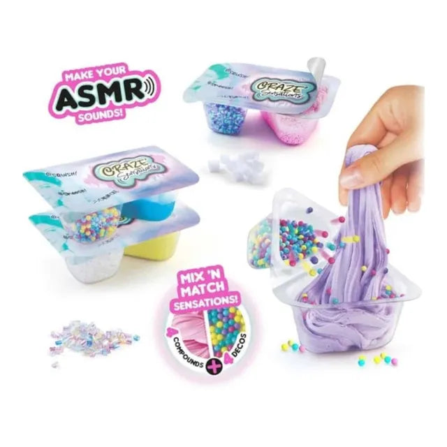 Open and discover a world of sounds and textures! Mix the decorations with the special compound to create uniquely satisfying sensations. Squish, pull and crunch and listen. There are twelve styles, see if you can collect them all!