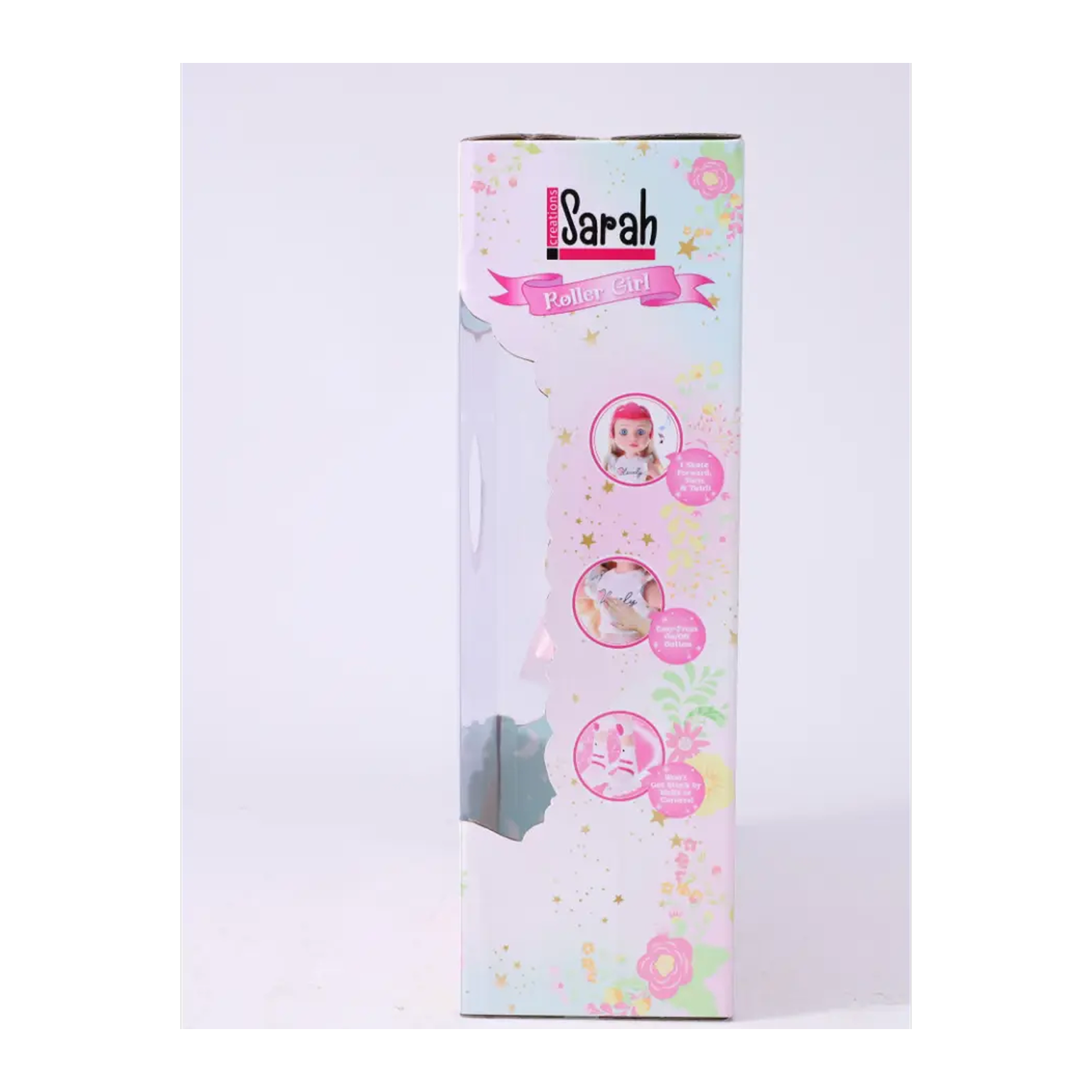 Sarah Creations - 14'' B/O Infrared Roller Skating Girl can skate & dance with music, Removable helmet, realistic blading roller and kneel pads Vivid sweet face, curly ponytail hairstyle, and beautiful fashion dress; Crystal clear blue eyes with thick and long eyelashes Cuddly body encourages holding, nurturing, a child can develop social skills while engaging in pretend playtime fun 14 inches tall, the perfect size for children of 3 - 7 years old to hug & carry.