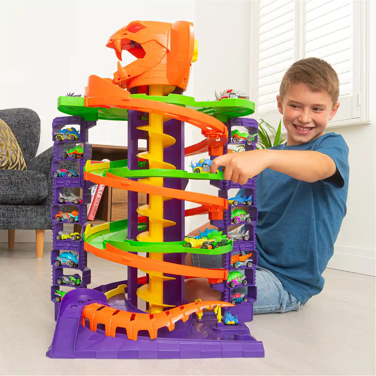 The 4 Level Garage features light up eyes, car engine and serpent sound effects