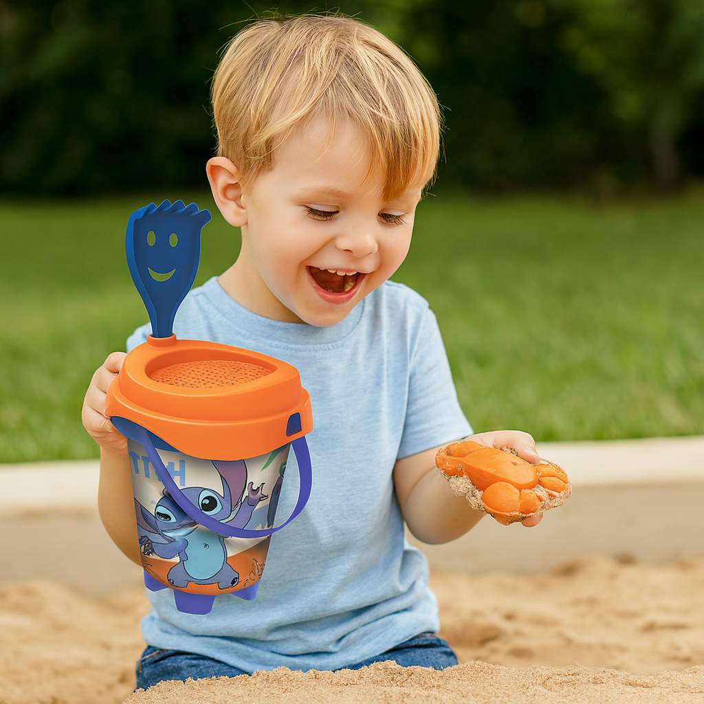 This **Stitch-themed beach bucket playset**—featuring Disney’s beloved character—offers a colorful and engaging sand-play experience for children.