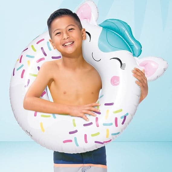 If there is anything that you can count on for bringing the most amount of fun and joy to your kids, it is one of the best inflatable float Tube in which the kid can not only fit in comfortably but can also enjoy by floating, splashing and playing around the pool with water. This round-shaped ring comes with nice Donut Shape and bright colours making it an attractive accessory for your little one. Additionally, once inflated this swim ring acts as a protective gear for your child that helps him or her stay float on water. Having a size of 36"x30" when fully inflated, it provides a comfortable fit to your kid's waist and the lower portion of the body while he or she is playing in the pool.